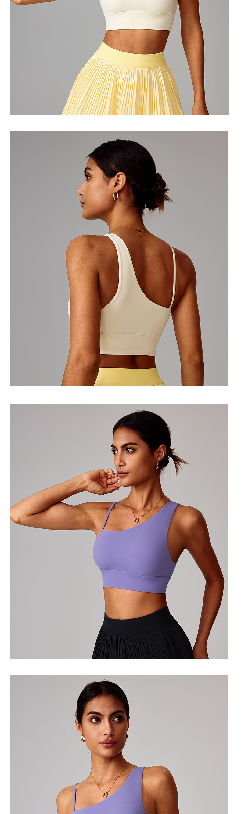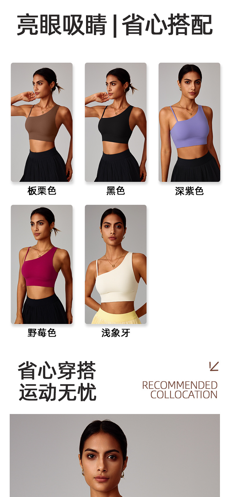 여성용 스포츠 브라, 충격 방지 및 처짐 방지 요가 브라, 가슴 패드가 있는 아우터웨어, 비스듬한 원 숄더 피트니스, 러닝, 댄스 및 아름다운 등