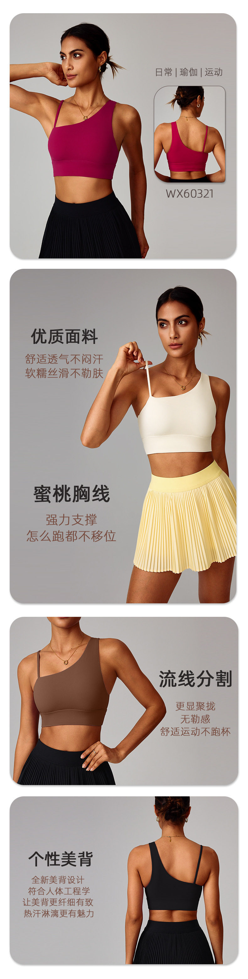 여성용 스포츠 브라, 충격 방지 및 처짐 방지 요가 브라, 가슴 패드가 있는 아우터웨어, 비스듬한 원 숄더 피트니스, 러닝, 댄스 및 아름다운 등스토어 가기