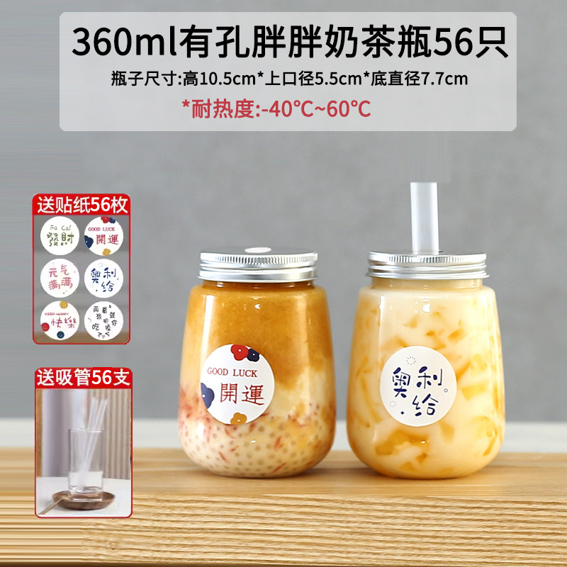 • 구멍이 있는 350ml 직사각형 병, 캡 80세트, 무료 스티커 + 빨대
