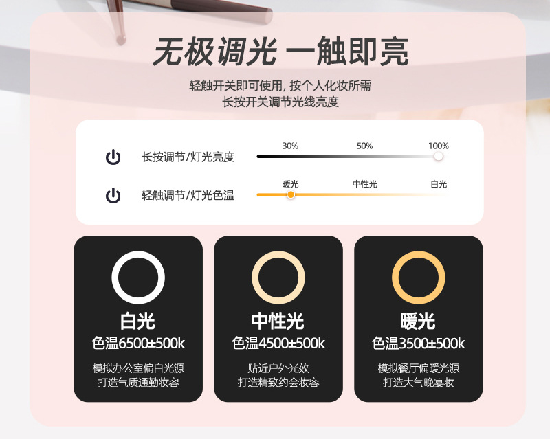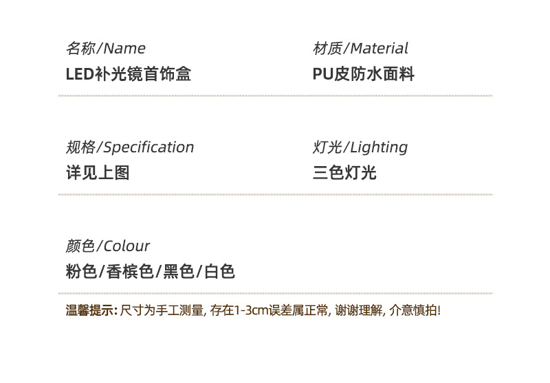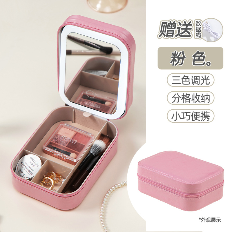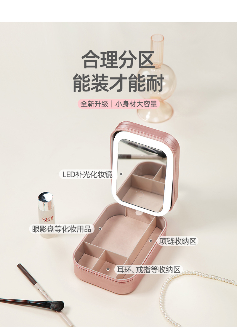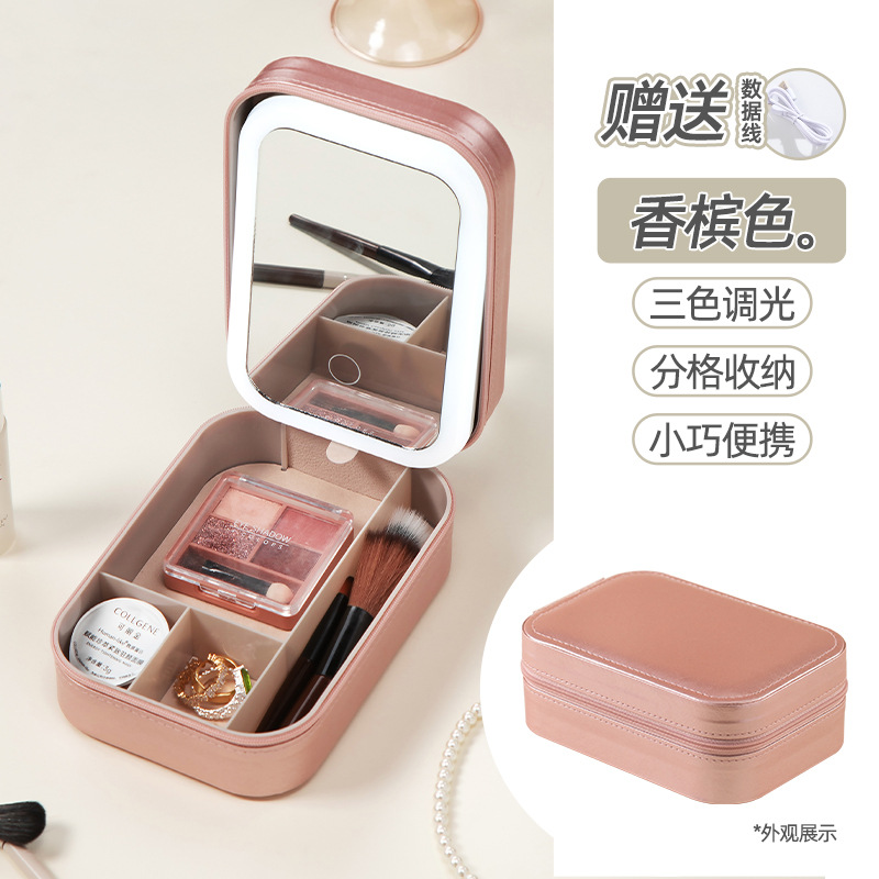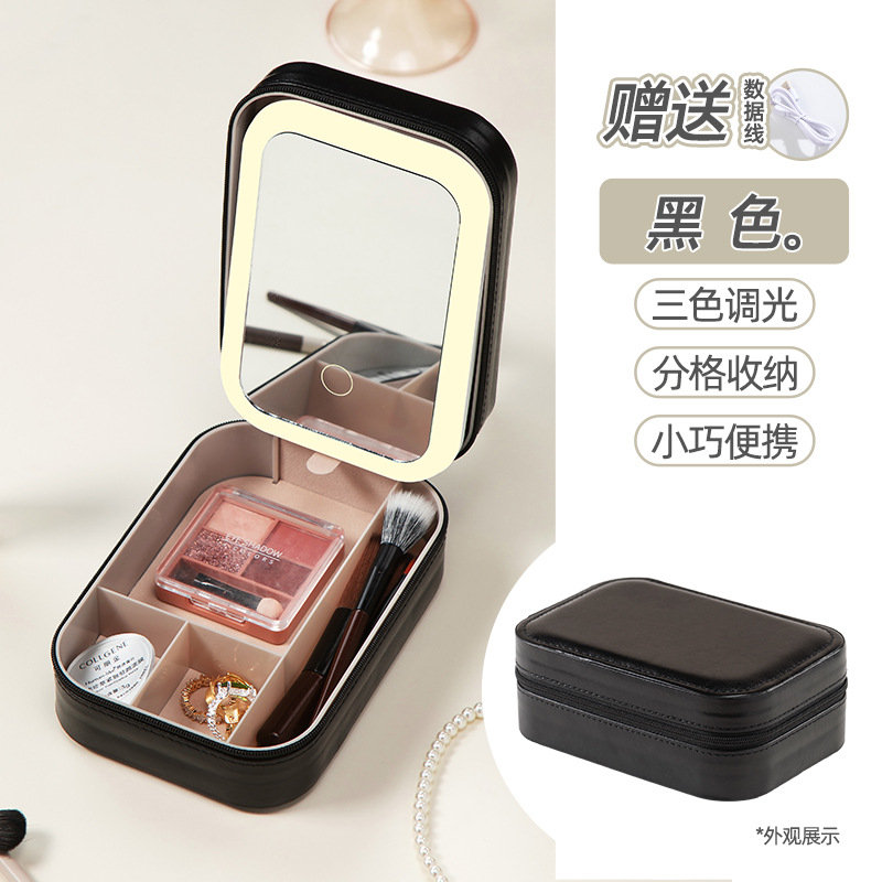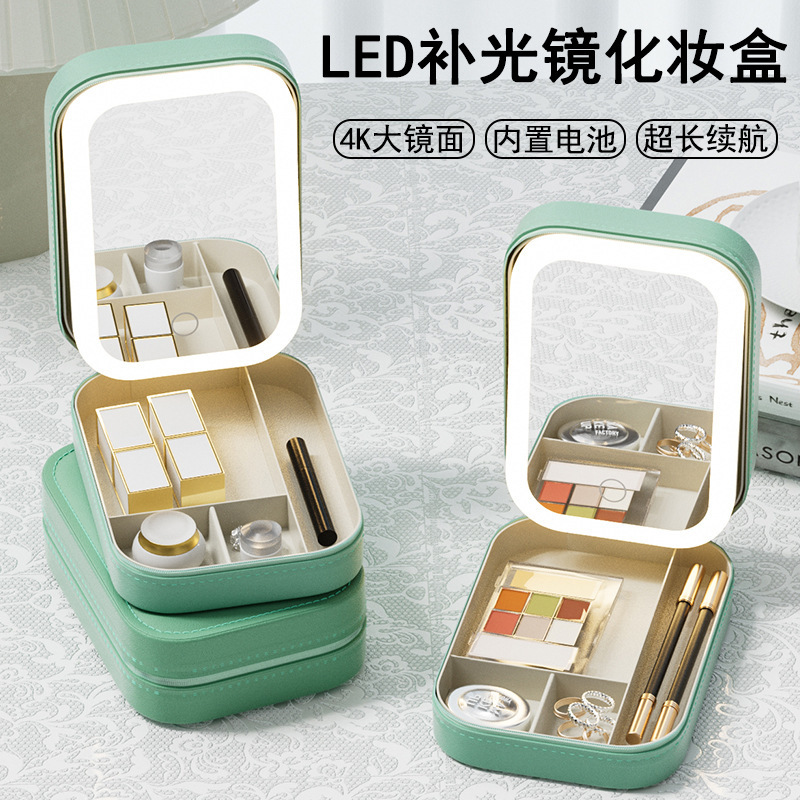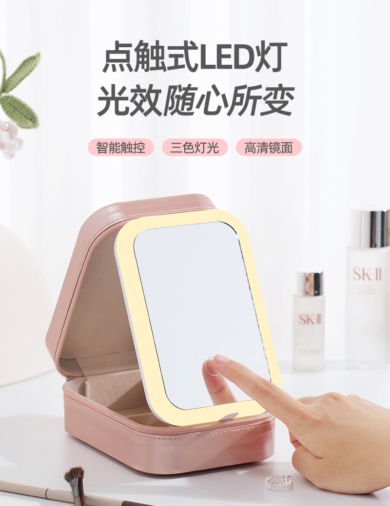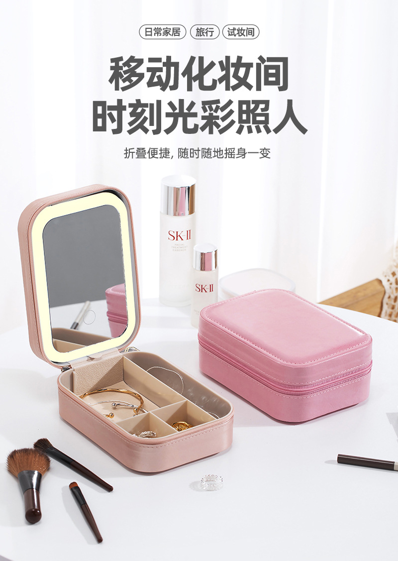 국경을 넘는 인기 접이식 휴대용 외출용 화장품 가방, 조명 거울 일체형 화장품 케이스, 다기능 데스크탑 화장품 가방