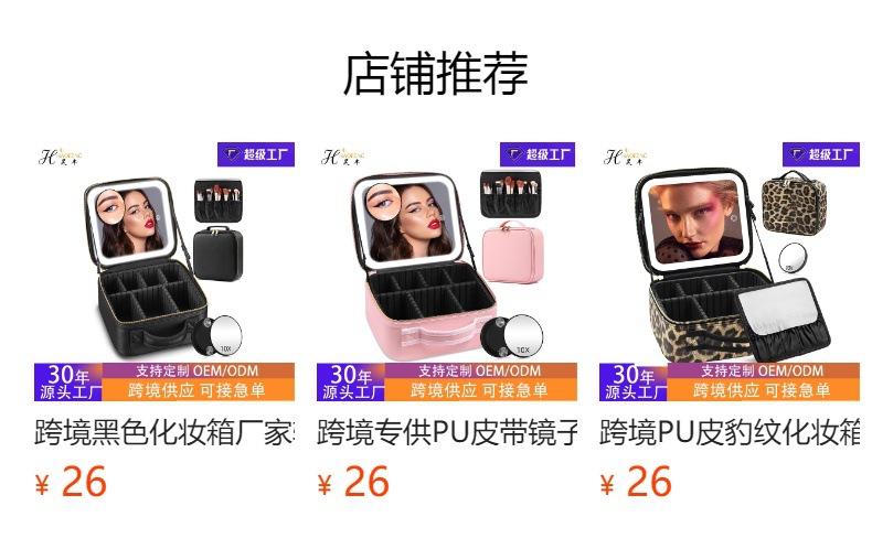 국경을 넘는 인기 접이식 휴대용 외출용 화장품 가방, 조명 거울 일체형 화장품 케이스, 다기능 데스크탑 화장품 가방스토어 가기
