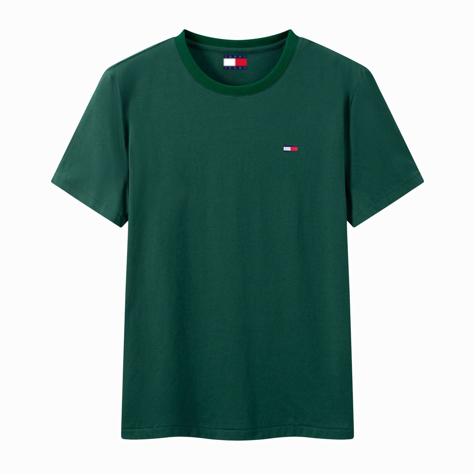 여름 남성 의류 토미 반팔 티셔츠 퓨어 코튼 라운드 넥 루즈 말레이시아 캐주얼 패션 반팔 셔츠