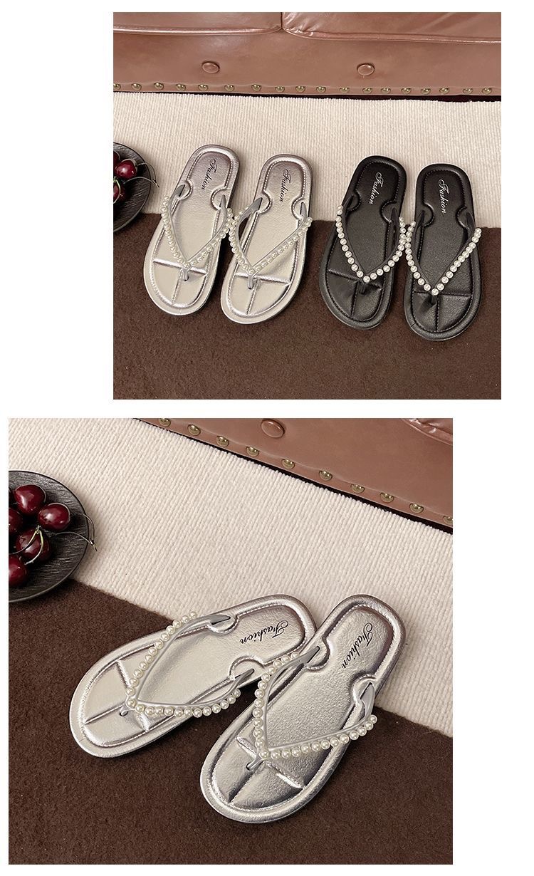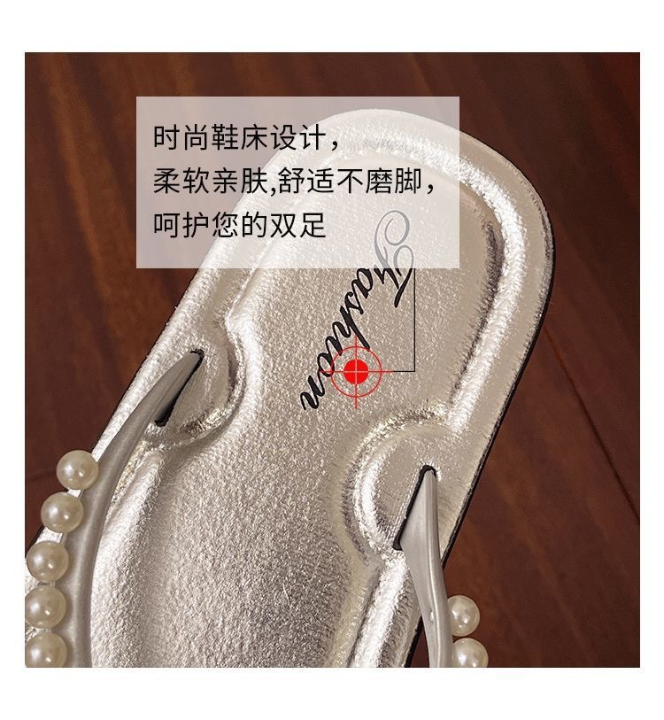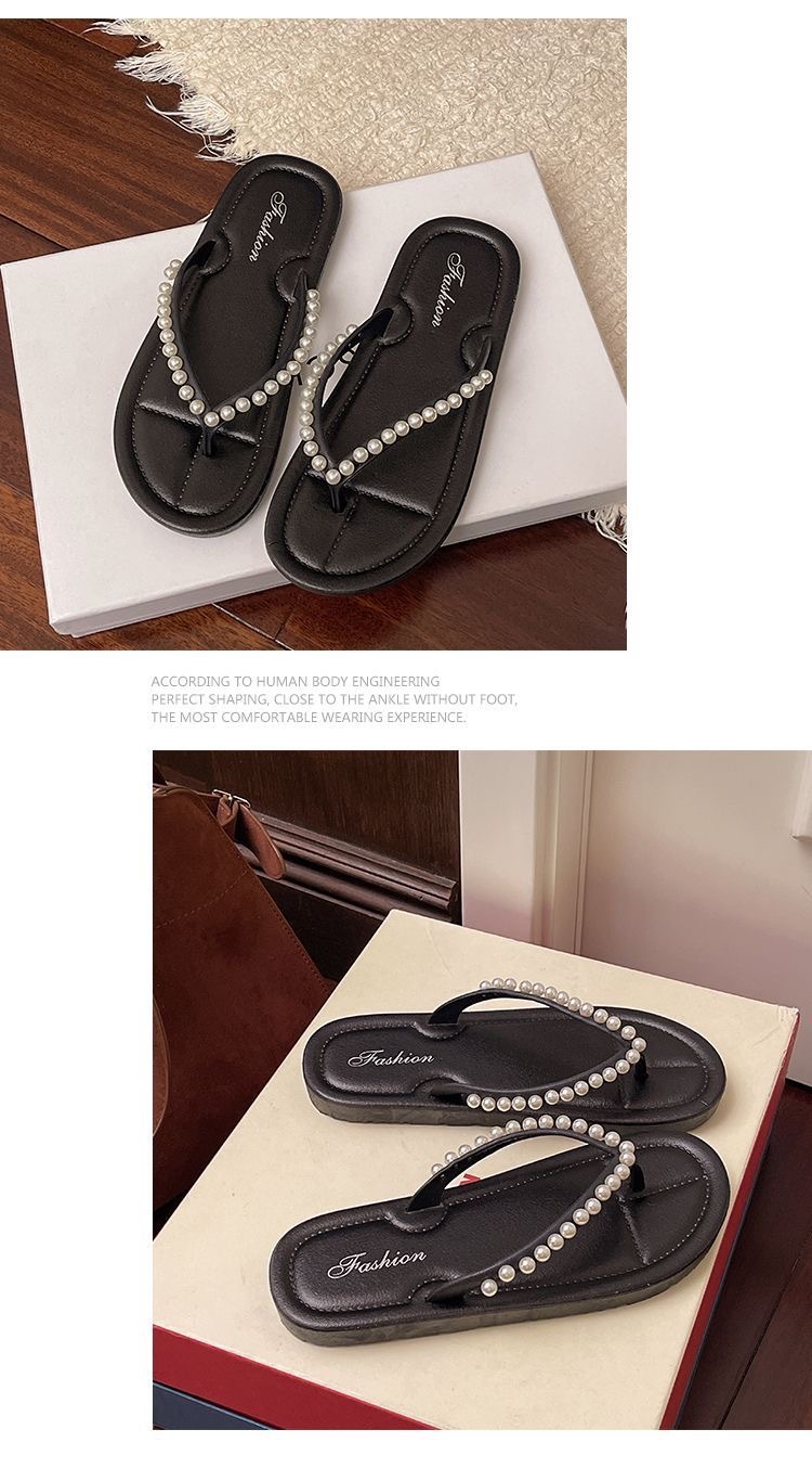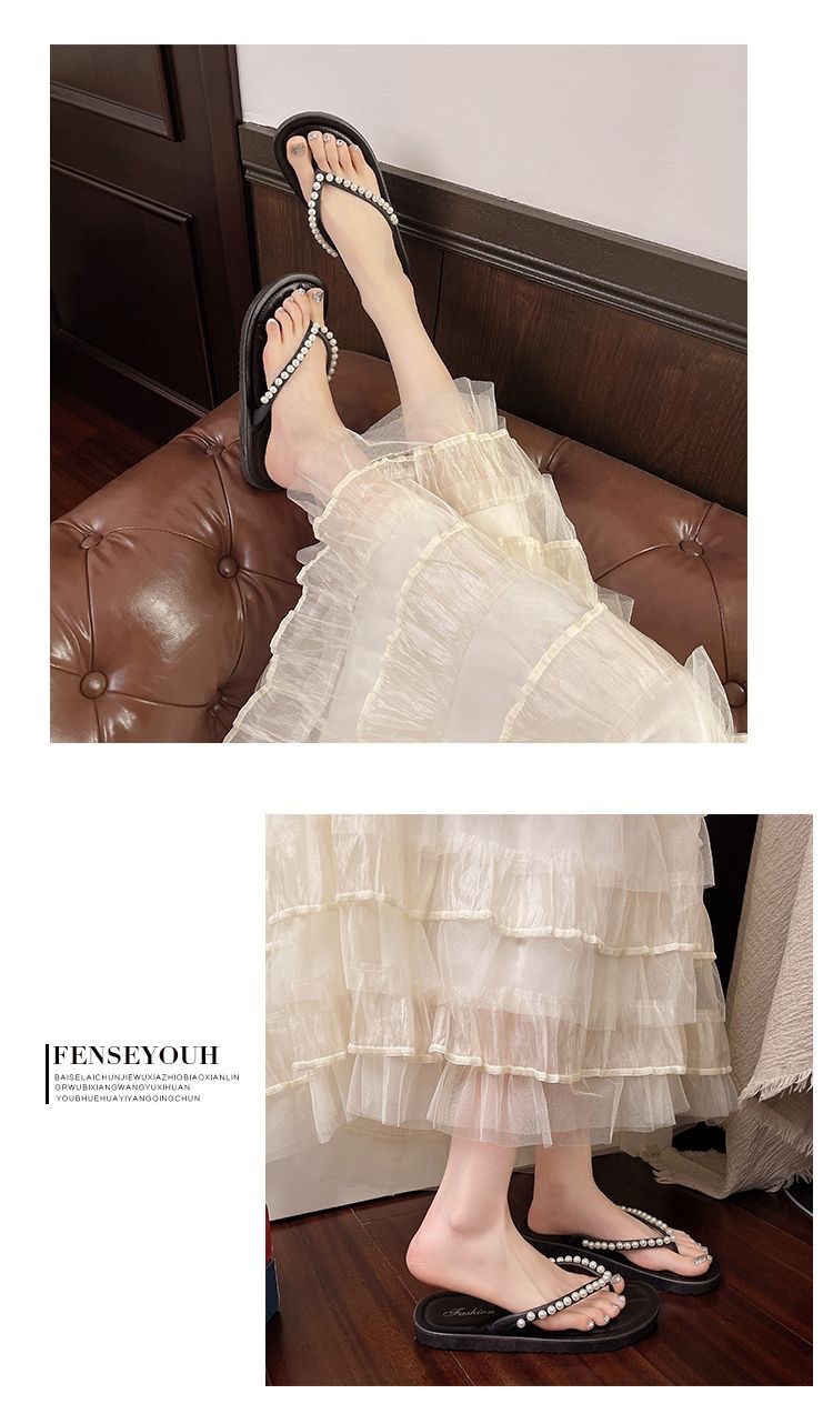 여성을위한 한국 스타일 패션 플랫 플립 플롭 2025 봄과 여름 새로운 스타일 요정 스타일 라인 석 여성 비치 플립 플롭스토어 가기