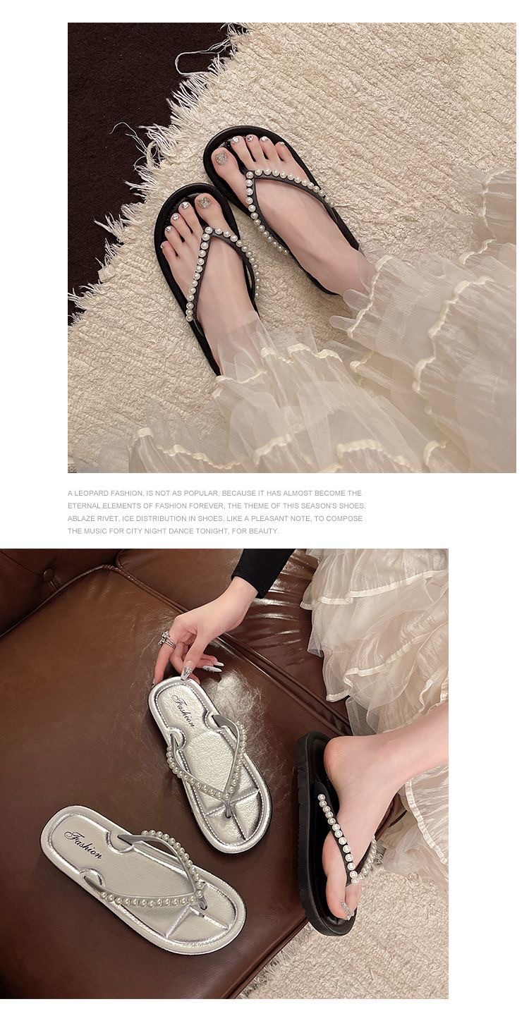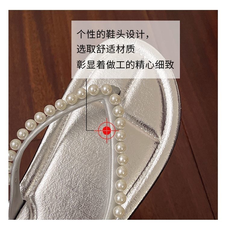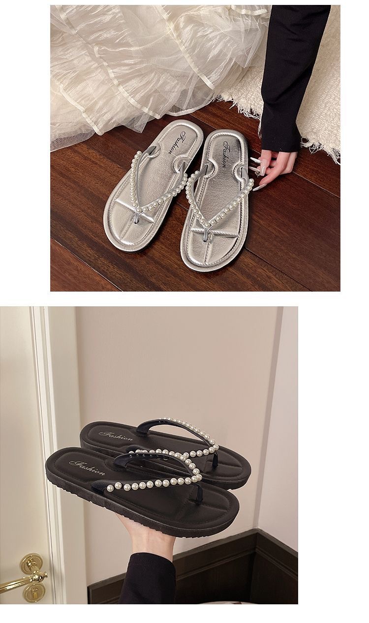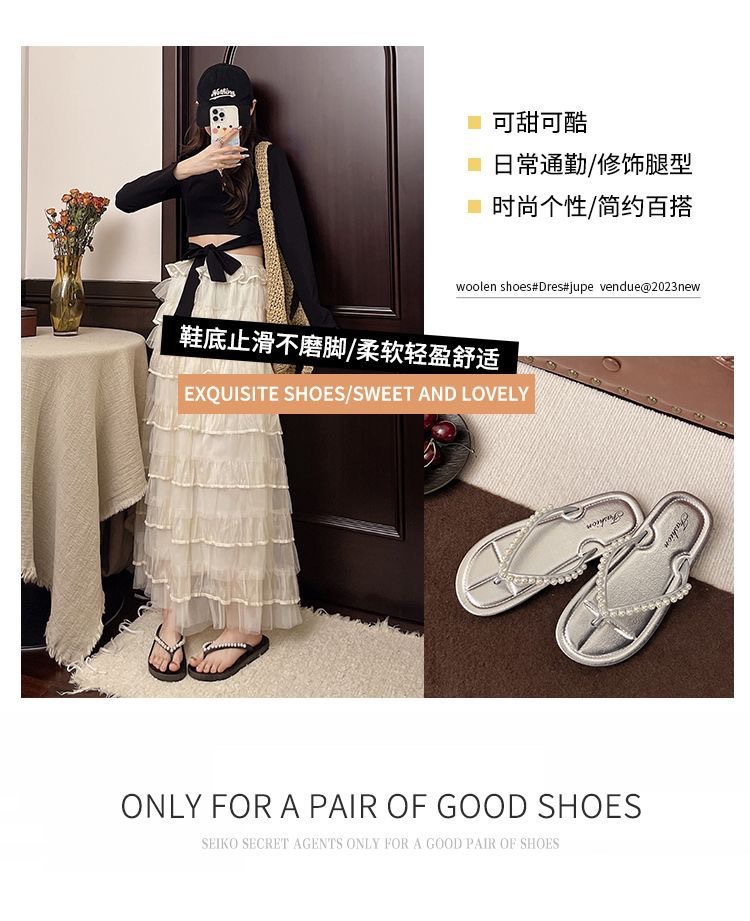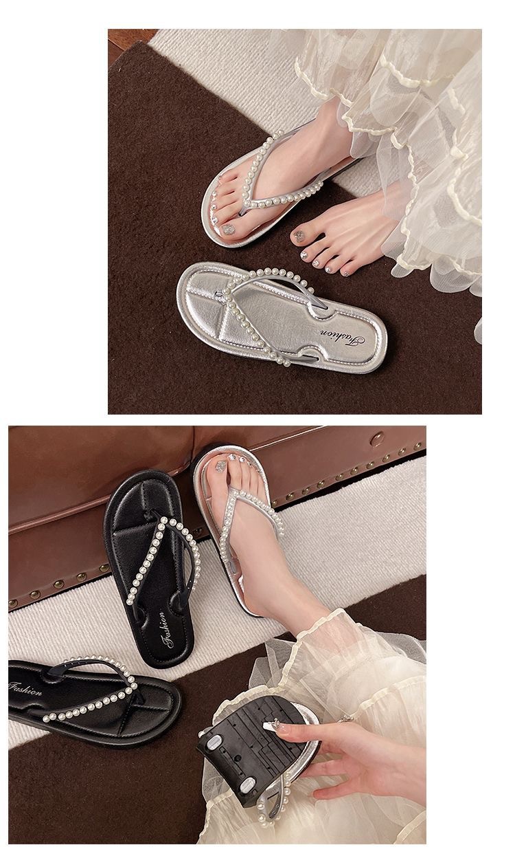 여성을위한 한국 스타일 패션 플랫 플립 플롭 2025 봄과 여름 새로운 스타일 요정 스타일 라인 석 여성 비치 플립 플롭스토어 가기