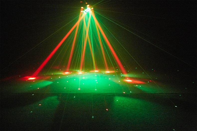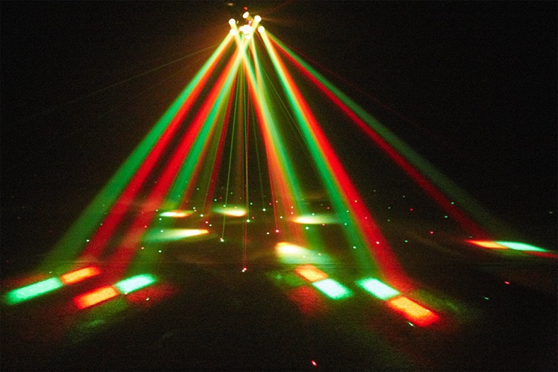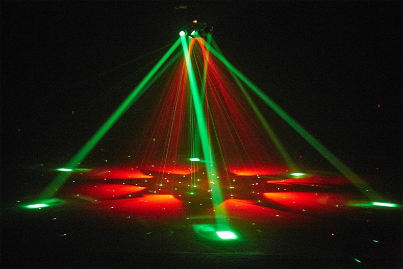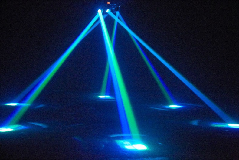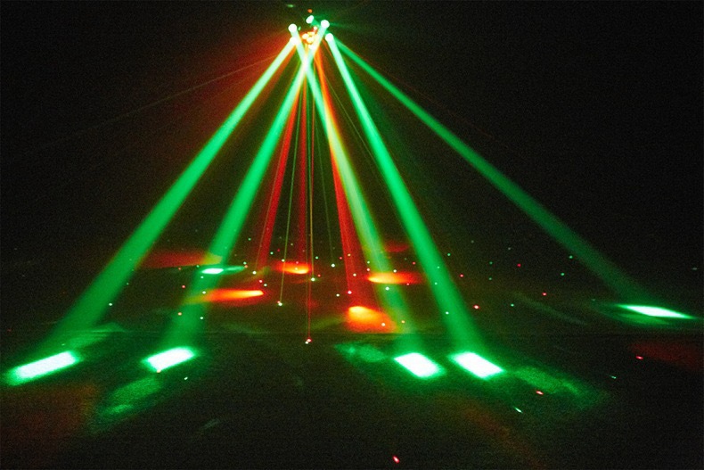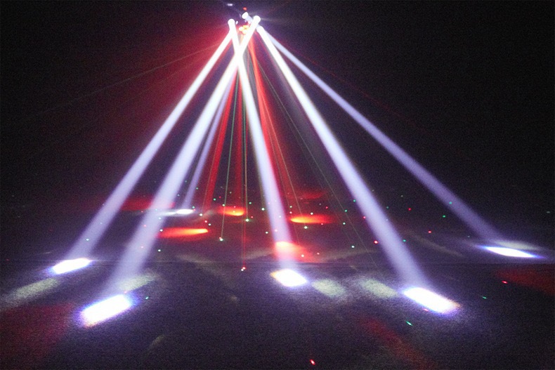 6개의 팔이 있는 소형 다이아몬드 염색 꿀벌 눈 레이저 올인원 LED 빔 라이트 바 KTV 무대 조명 분위기 회전