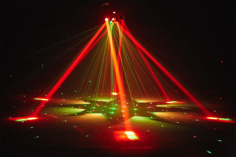 6개의 팔이 있는 소형 다이아몬드 염색 꿀벌 눈 레이저 올인원 LED 빔 라이트 바 KTV 무대 조명 분위기 회전스토어 가기