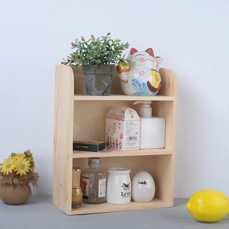 단단한 나무 데스크탑 정리자 zakka 3층 소나무 수납 선반 다육 꽃 선반 다층 화장품 수납 선반