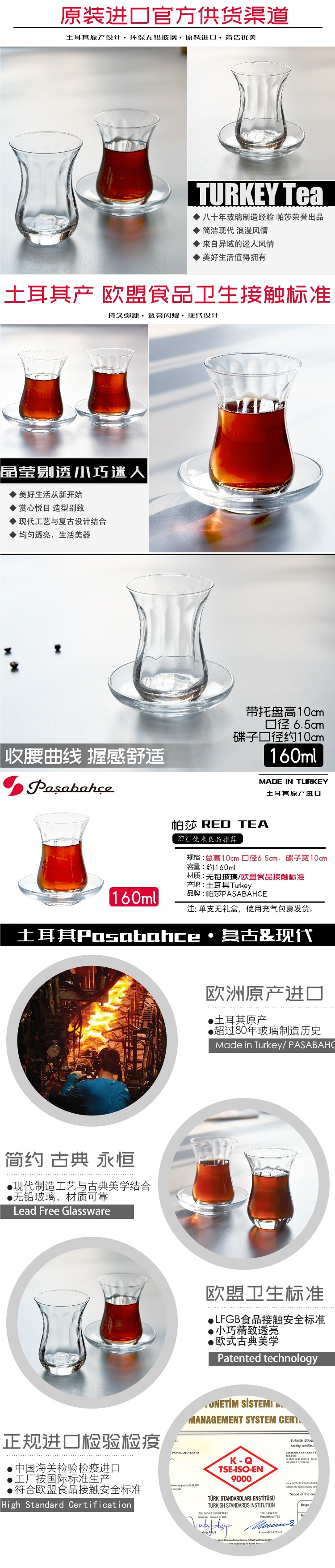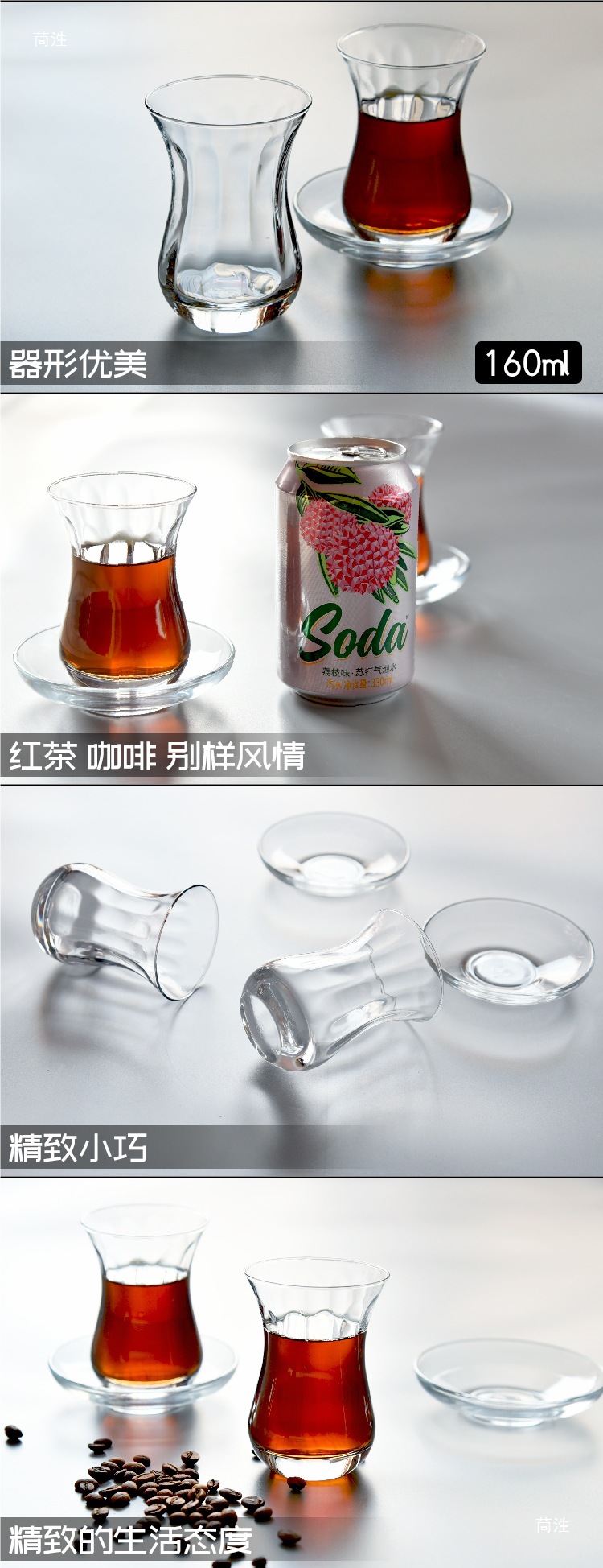 터키 홍차 컵 작은 신선한 커피 컵 유럽 스타일 차 바다 투명 유리 컵 트레이 뜨거운 음료 차 세트스토어 가기
