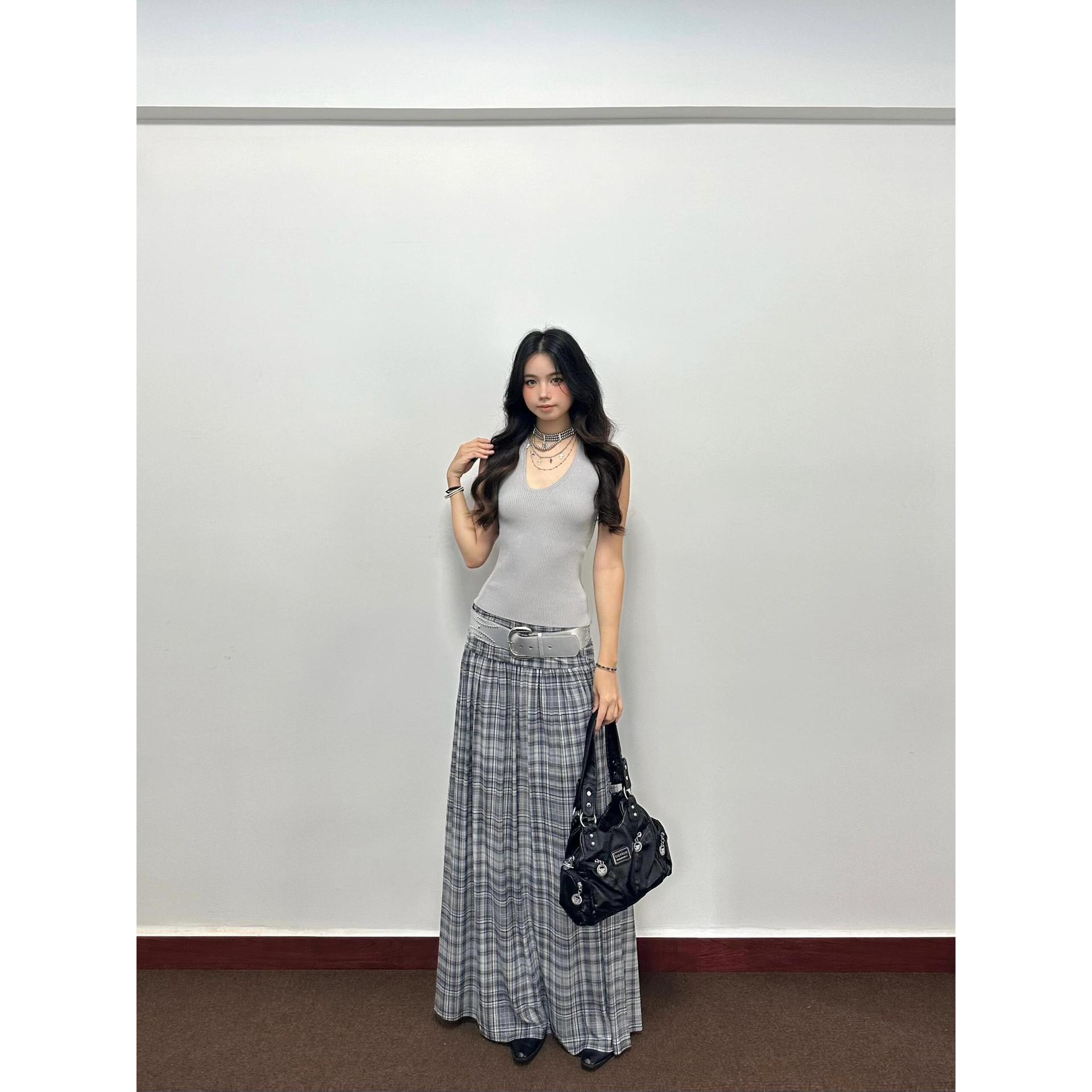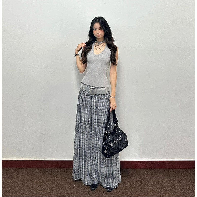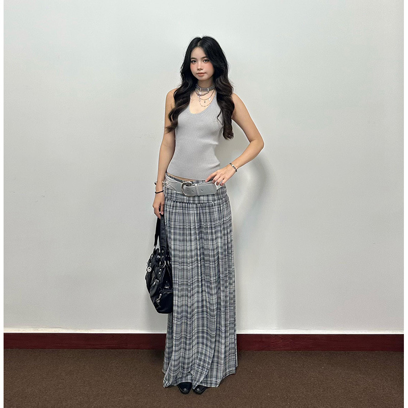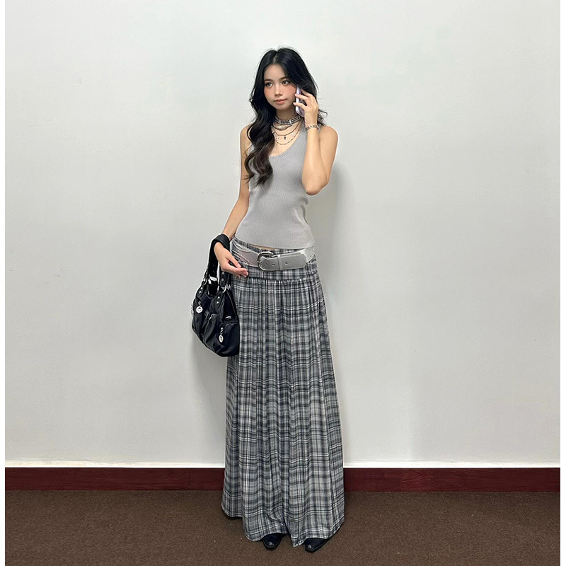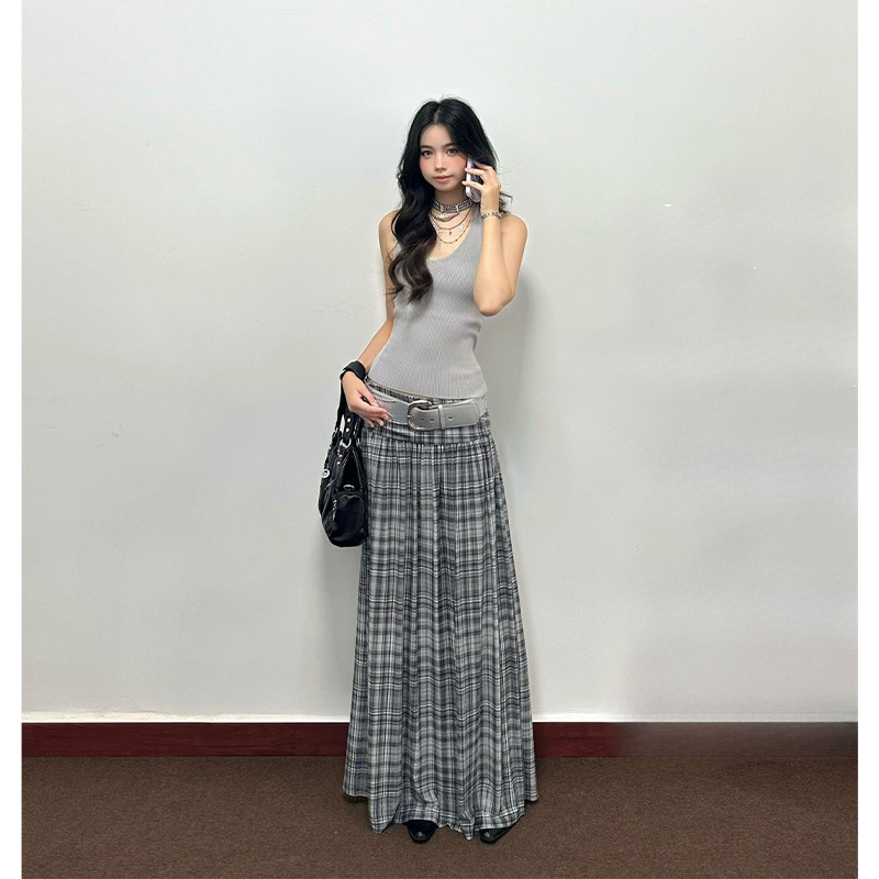 Pure lust hot girl wears slim camisole for women, high-waisted casual plaid skirt, women's two-piece suit스토어 가기