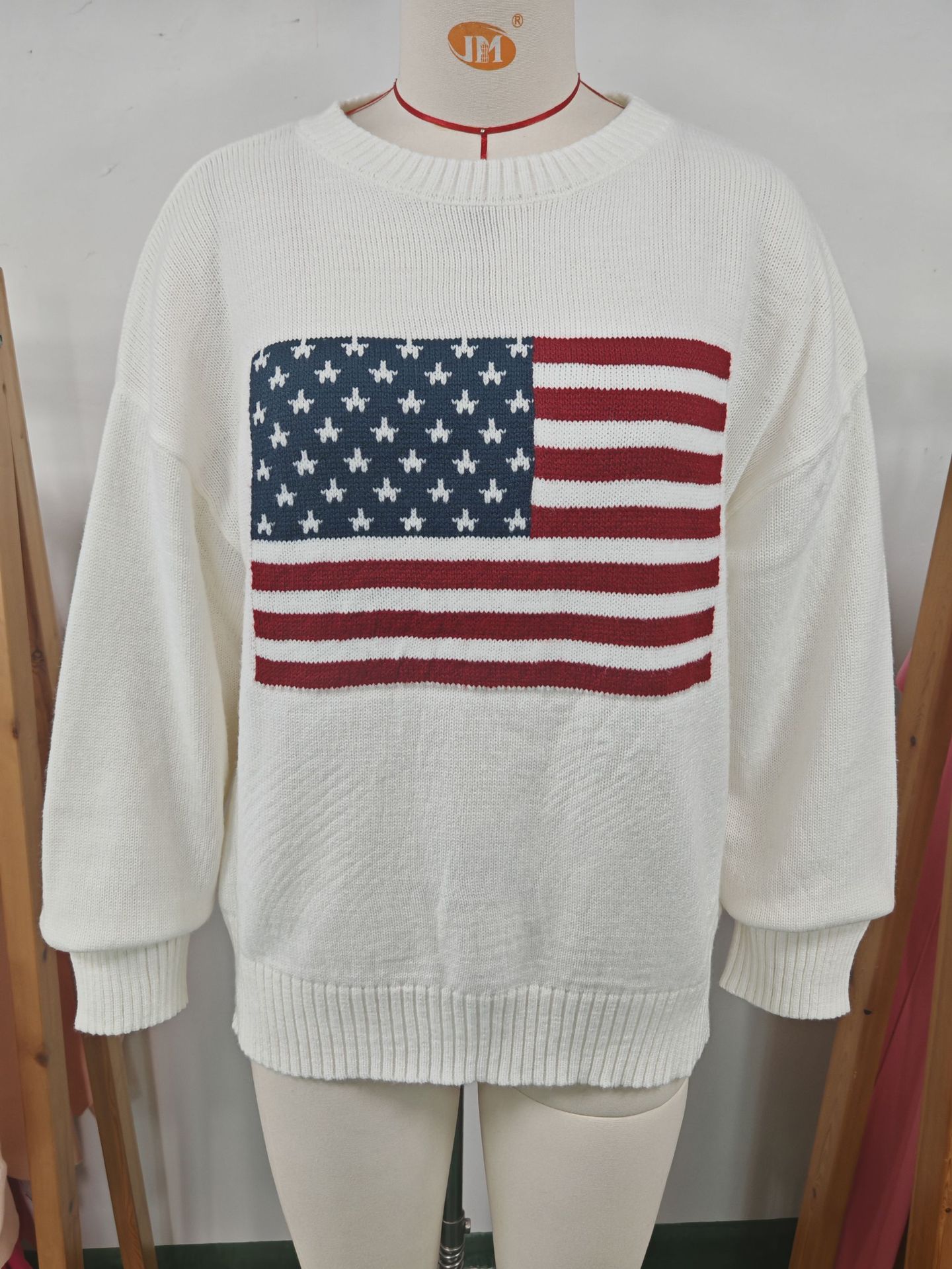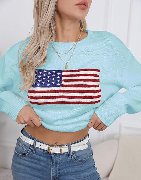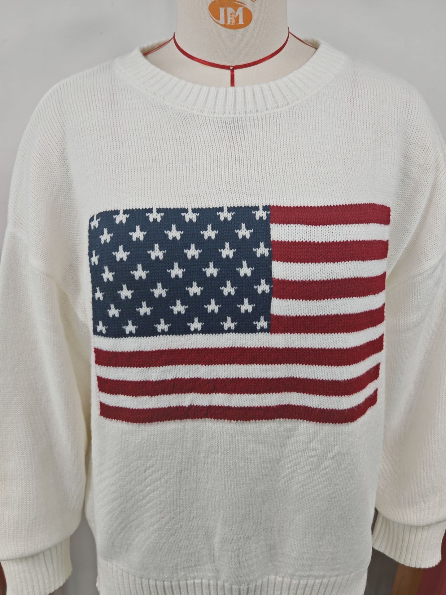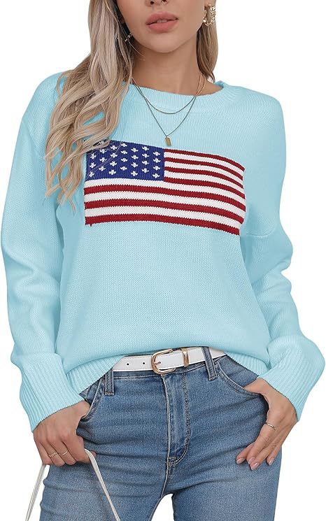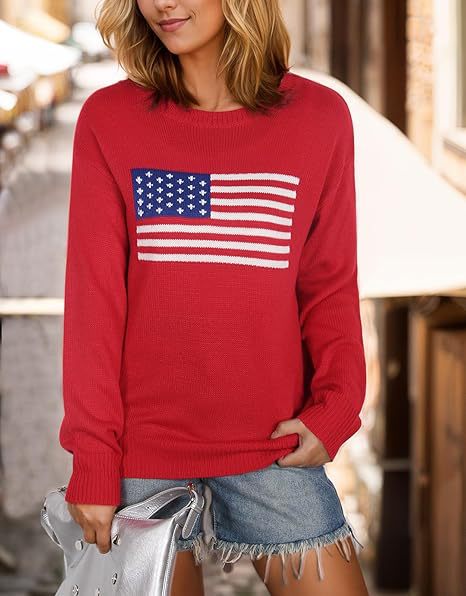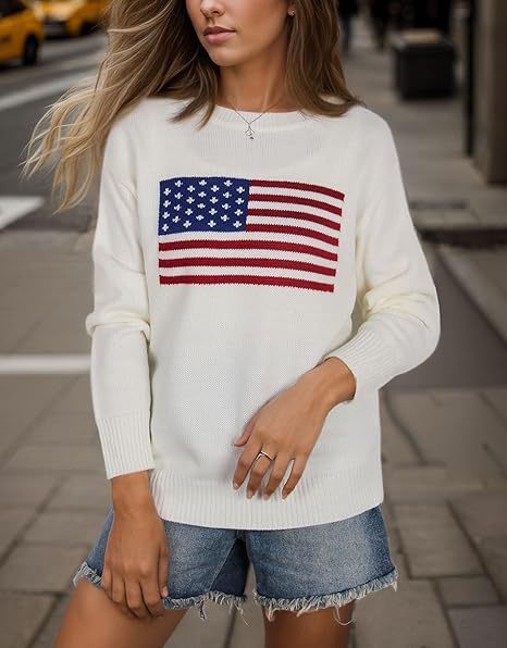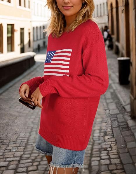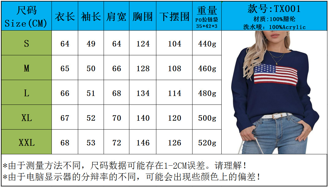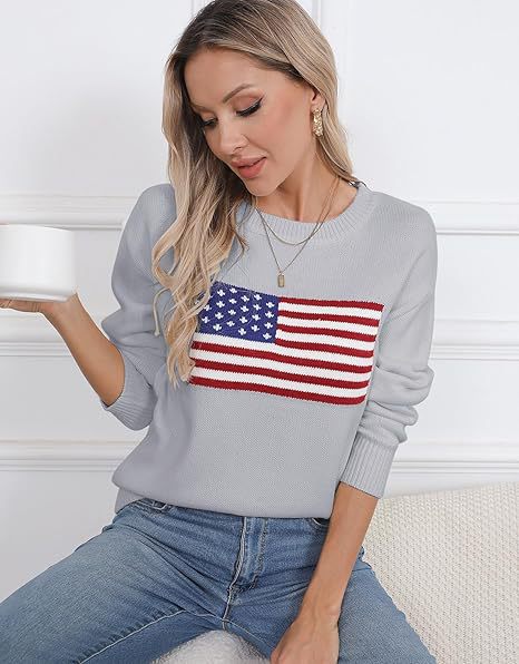 유럽과 미국의 겨울 여성복, 미국 국기 니트 스웨터, 여성용 루즈핏 다용도 유럽과 미국 스타일 캐주얼 풀오버 상의스토어 가기