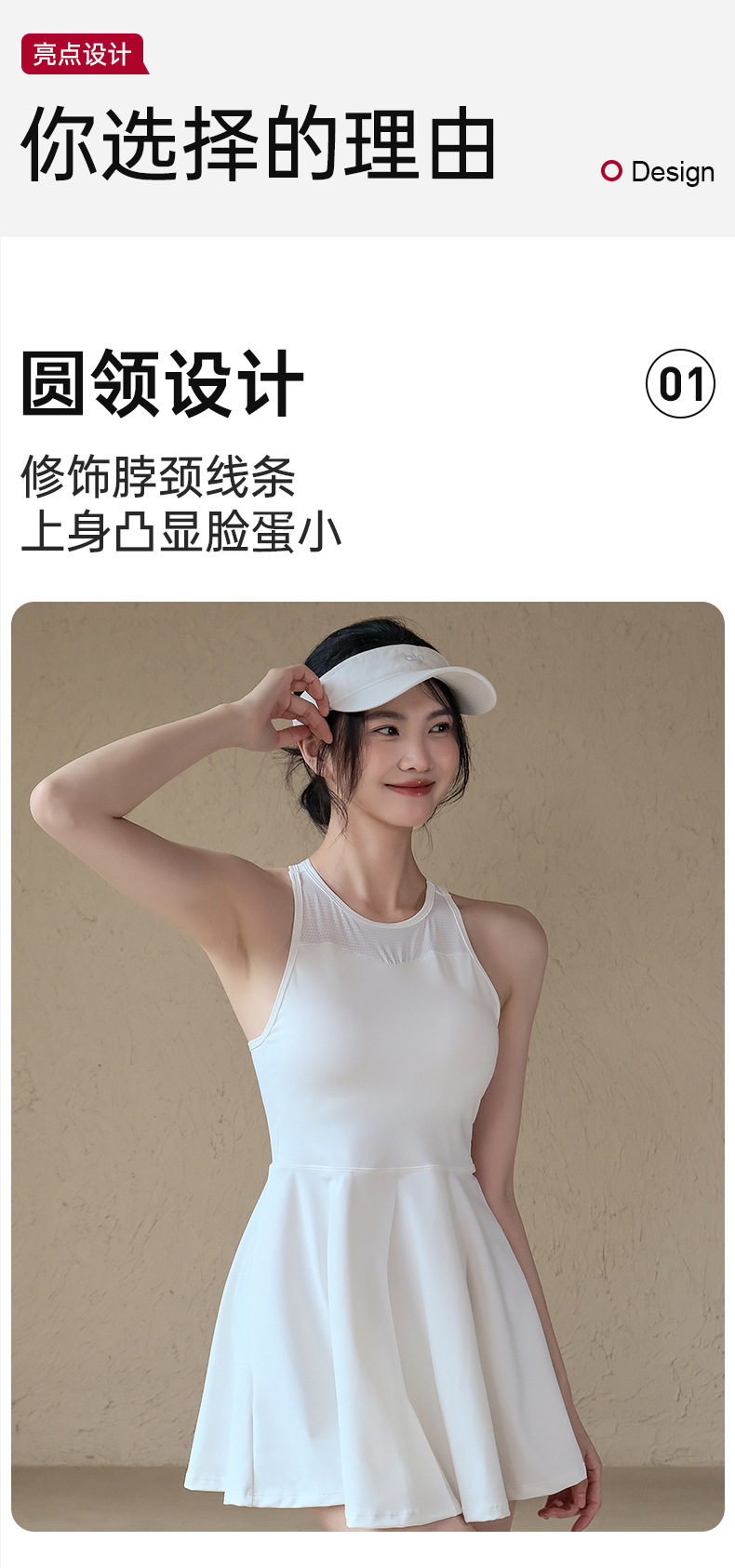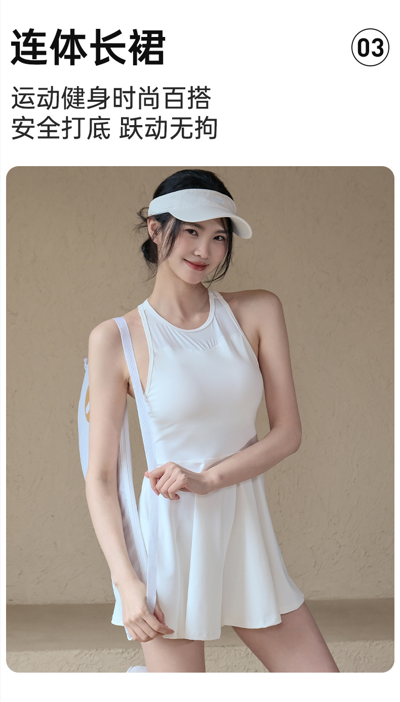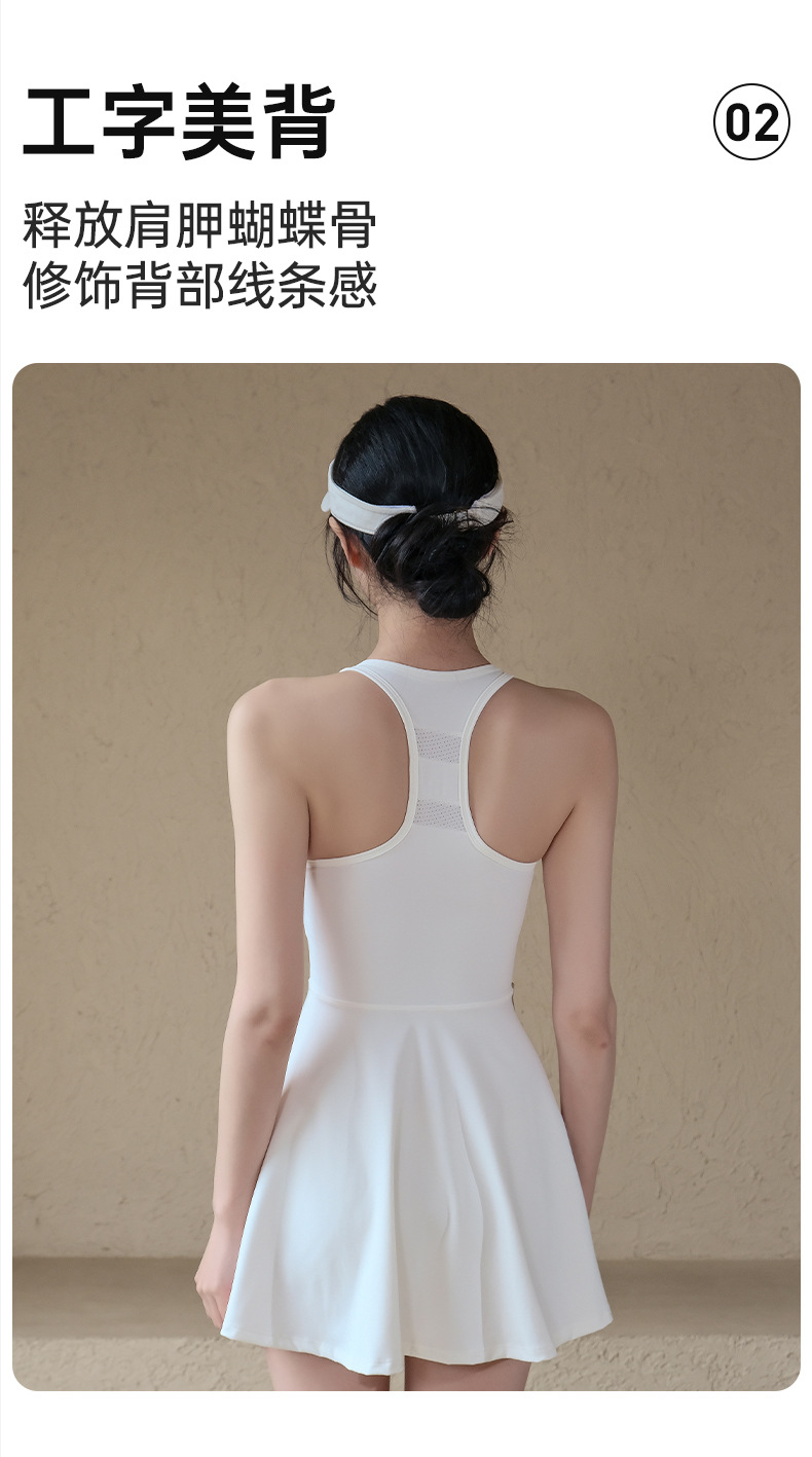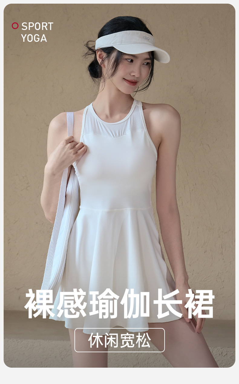 가슴 패드가 있는 여성용 하이엔드 여름 짧은 스커트 점프수트, 런닝 트레이닝 드레스, 누드 통기성 요가 피트니스웨어스토어 가기