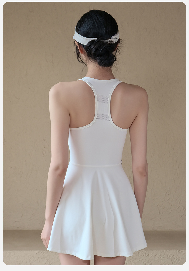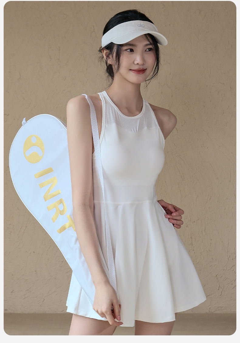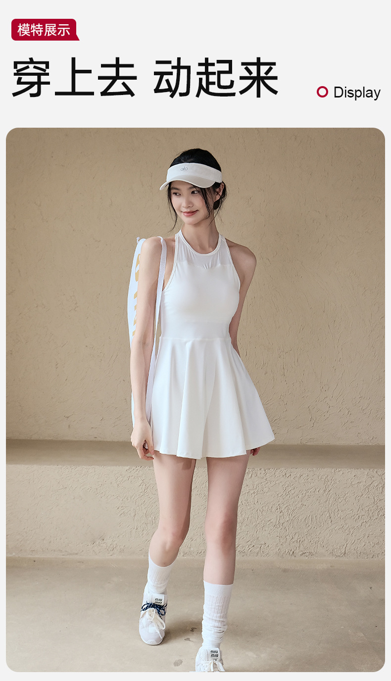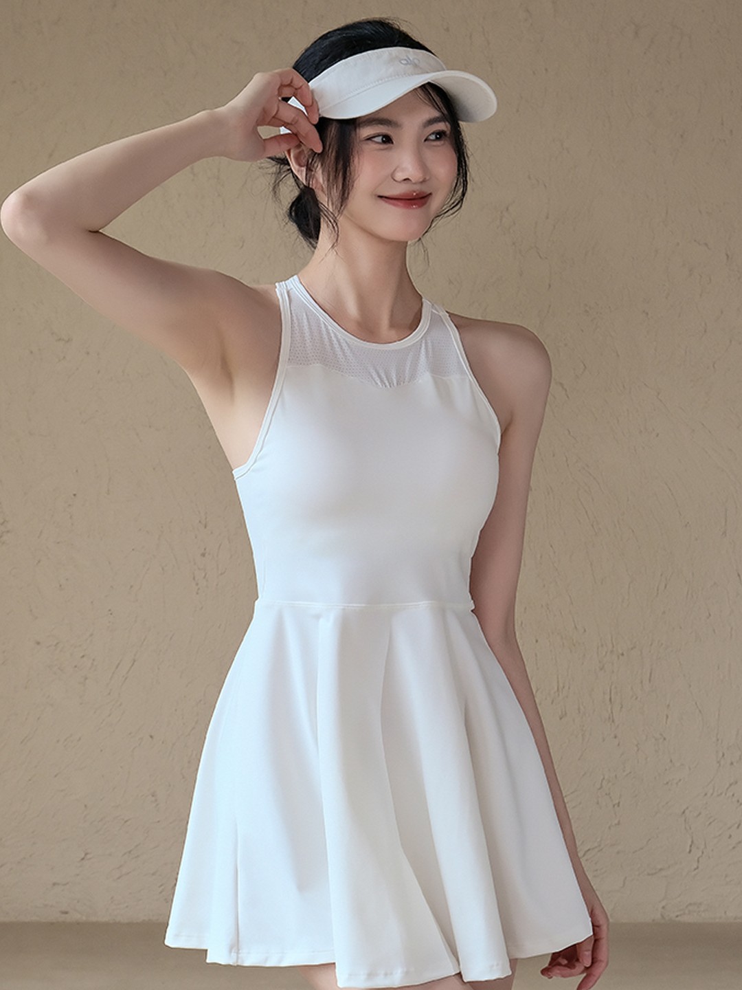 가슴 패드가 있는 여성용 하이엔드 여름 짧은 스커트 점프수트, 런닝 트레이닝 드레스, 누드 통기성 요가 피트니스웨어스토어 가기