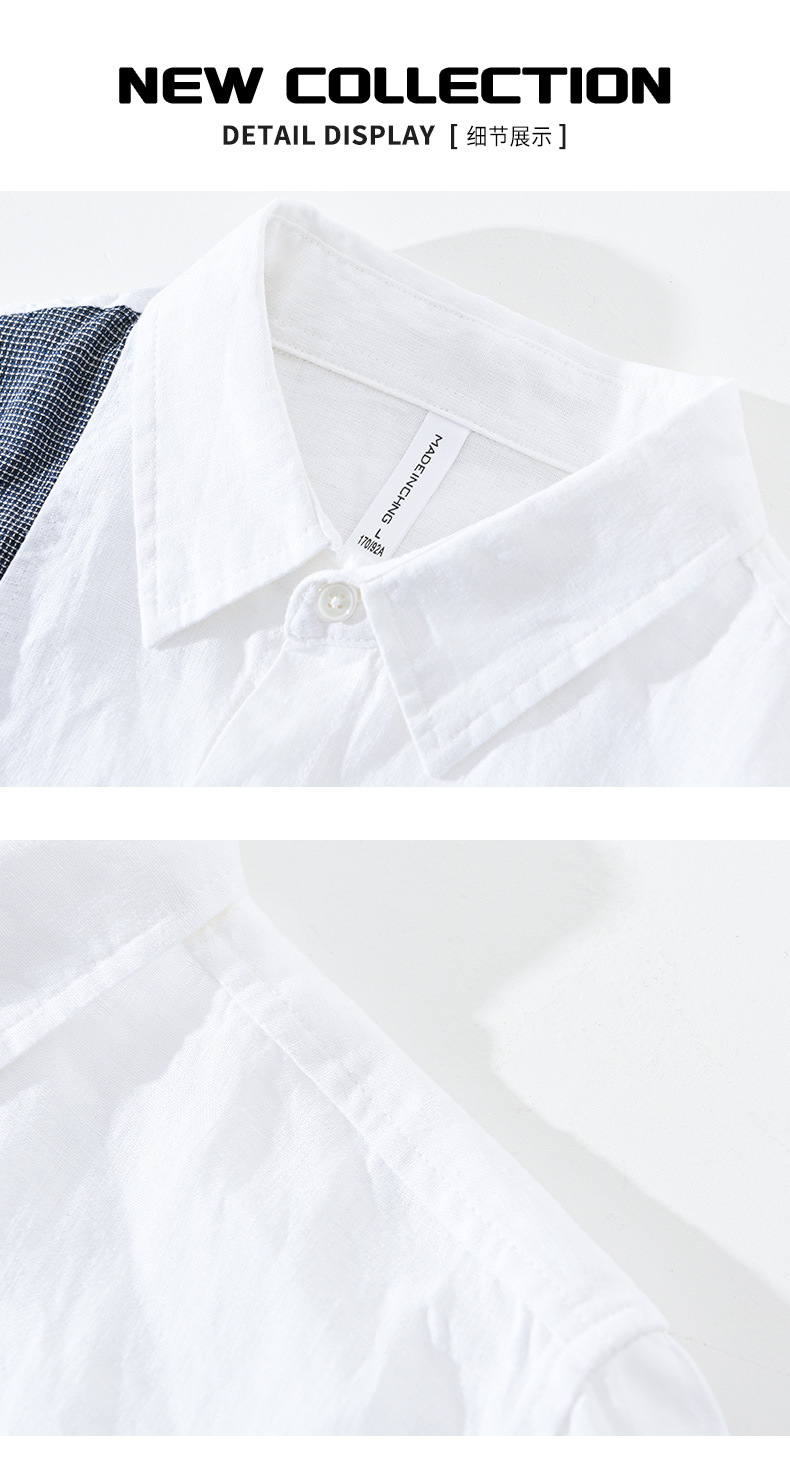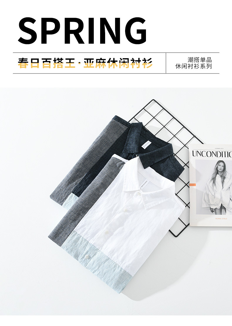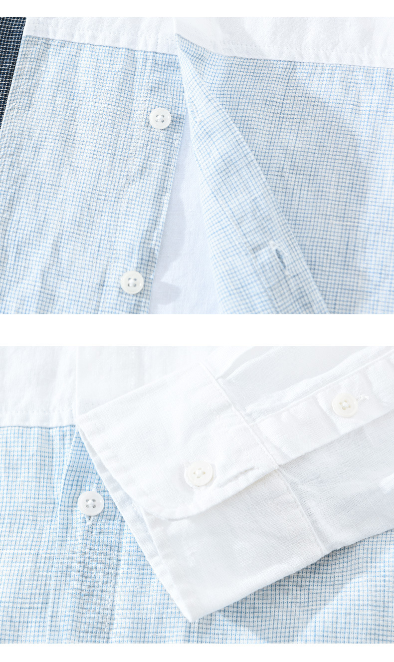 2085 스플라이스 대비 색상 긴팔 셔츠 남성용 봄 린넨 라펠 캐주얼 셔츠 일본 복고풍 트렌드 하이 엔드스토어 가기