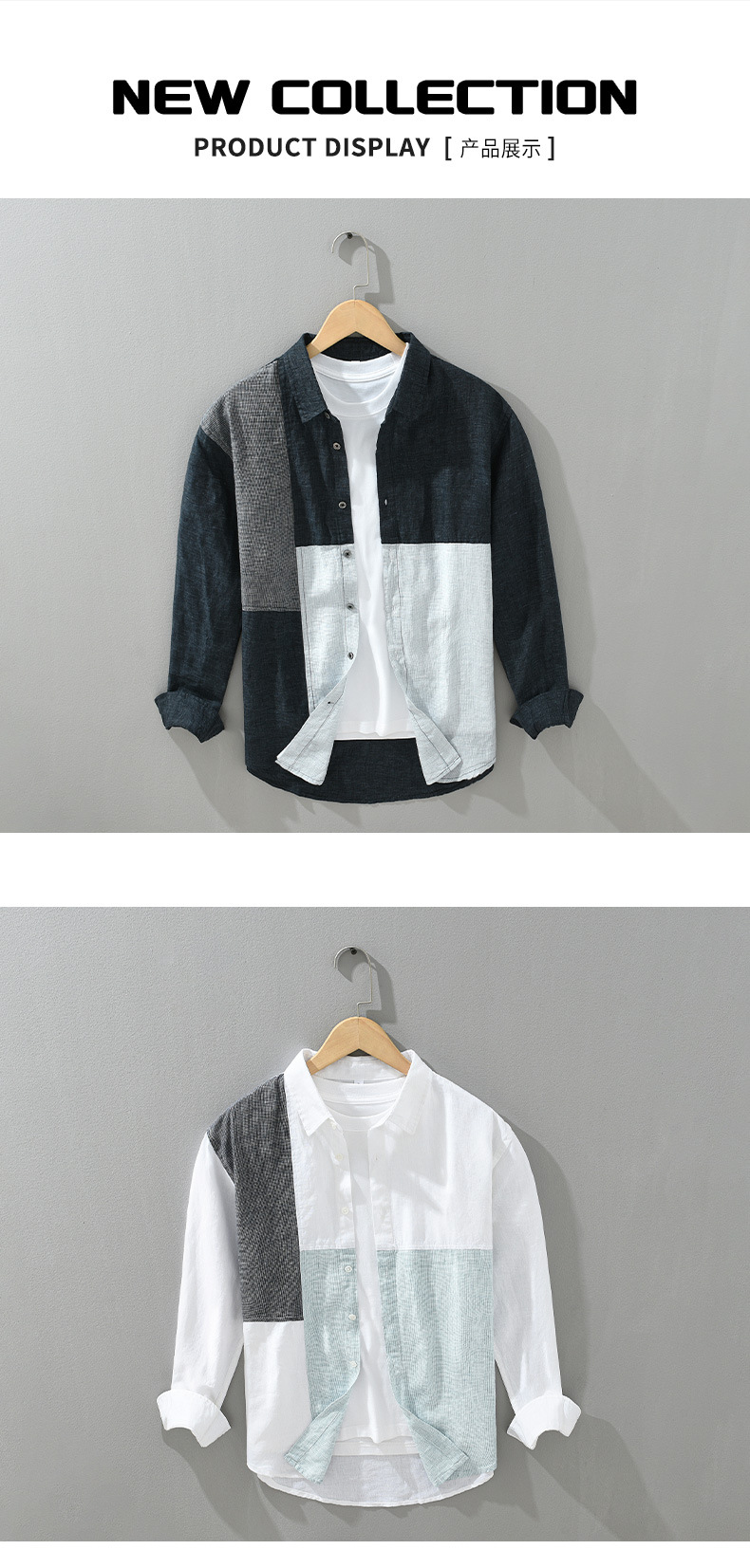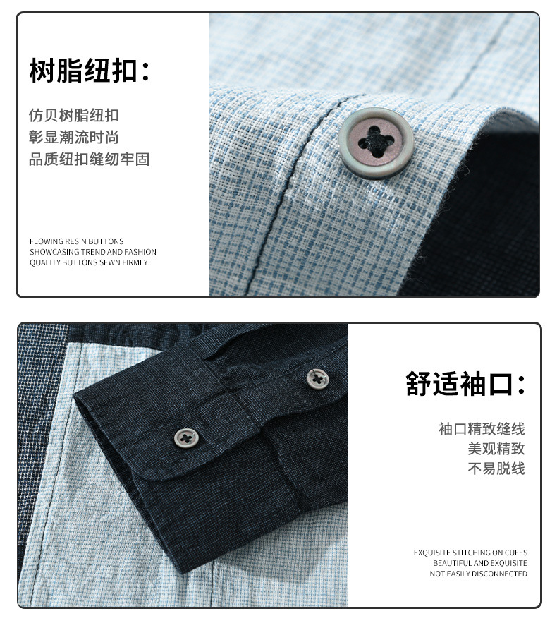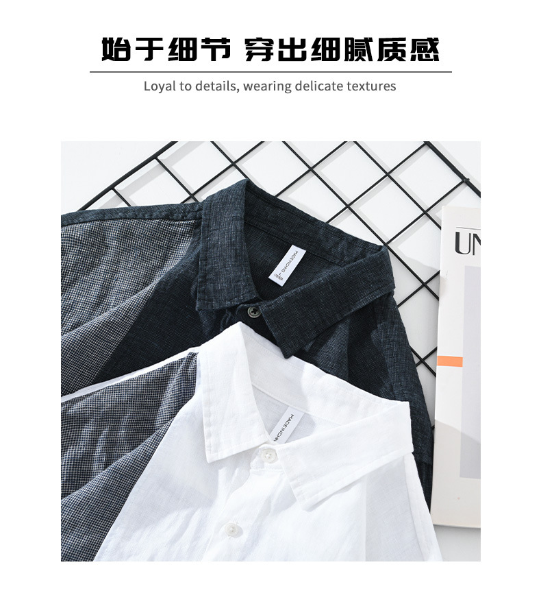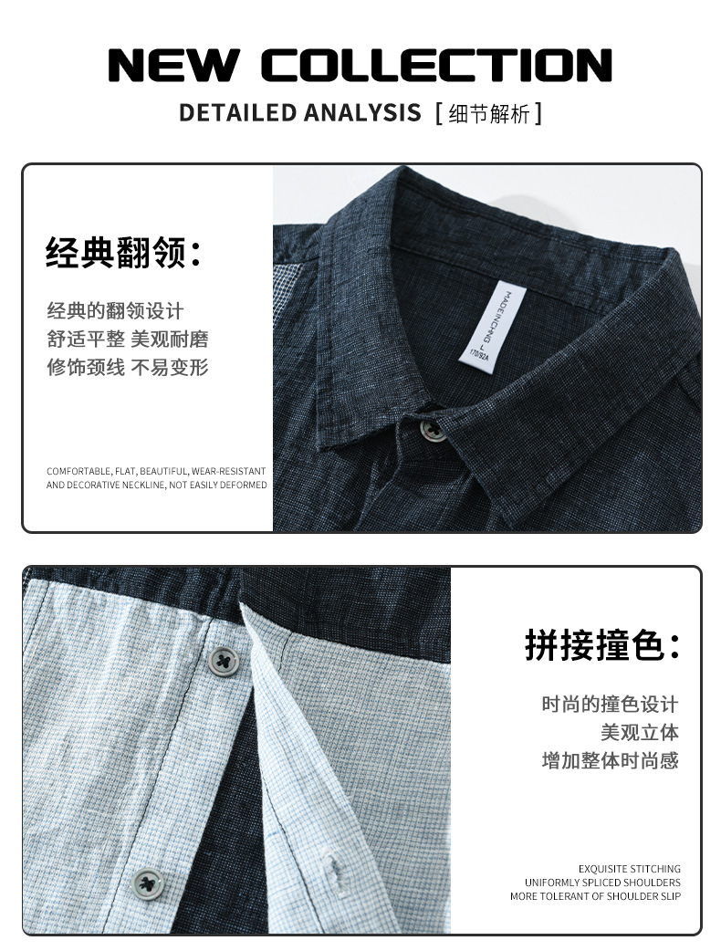 2085 스플라이스 대비 색상 긴팔 셔츠 남성용 봄 린넨 라펠 캐주얼 셔츠 일본 복고풍 트렌드 하이 엔드스토어 가기