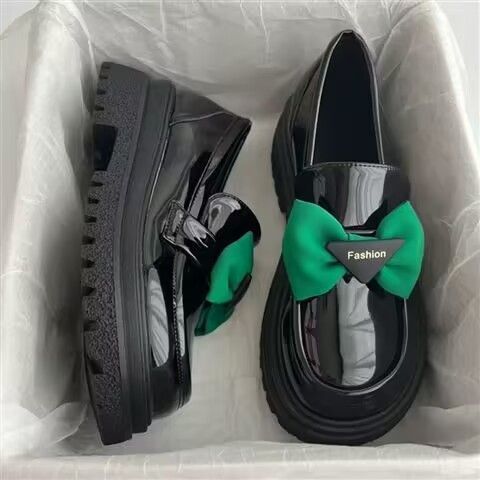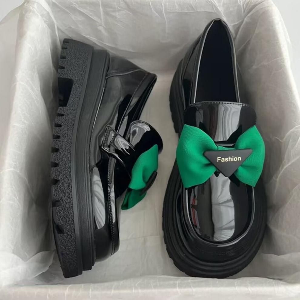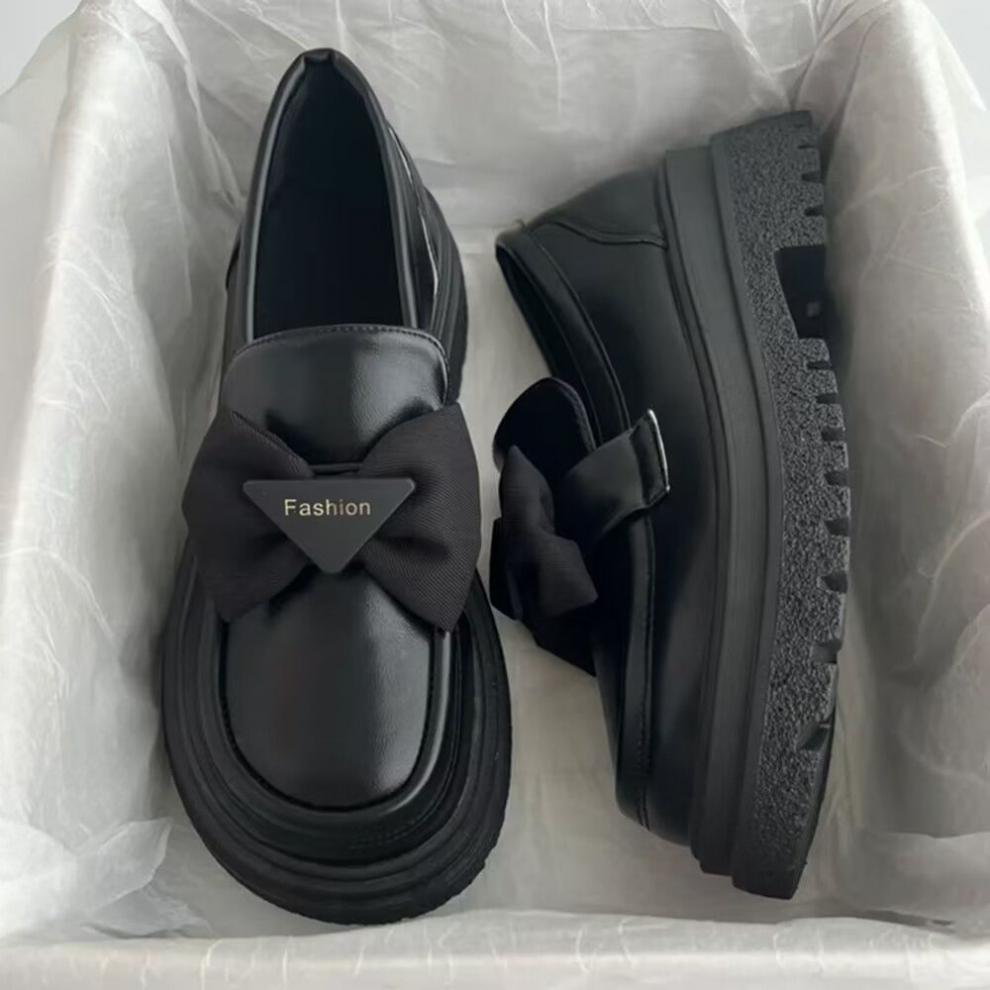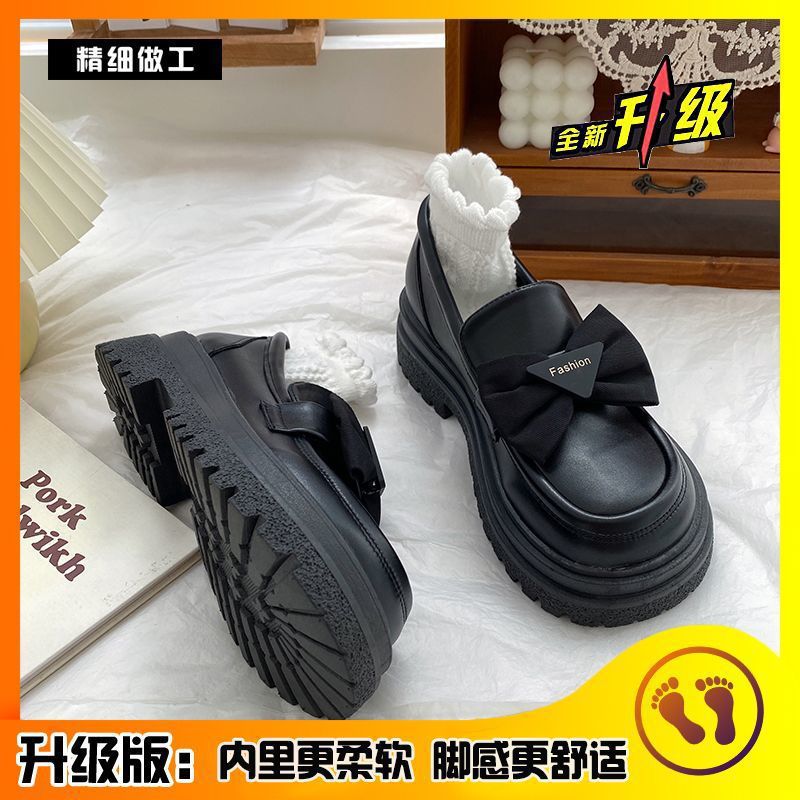 34-42 일본식 jk 슬립온 보우 로퍼 가을 신상 두꺼운 밑창 여성용 작은 가죽 신발스토어 가기