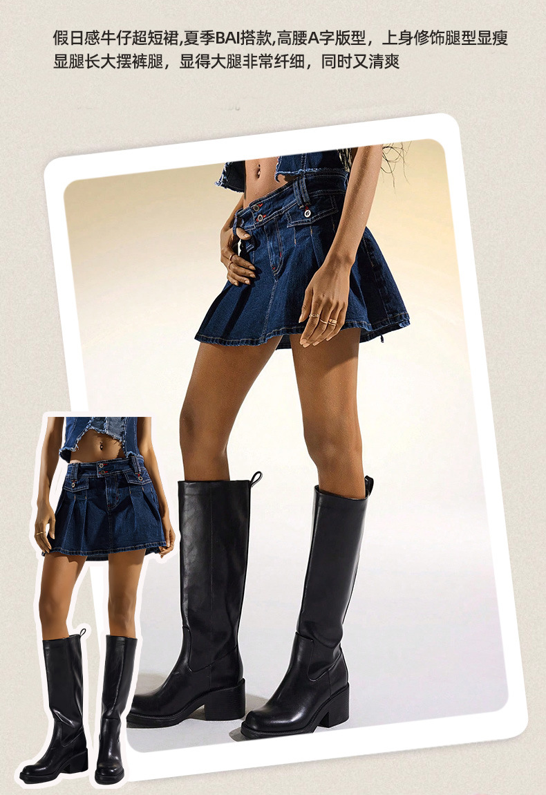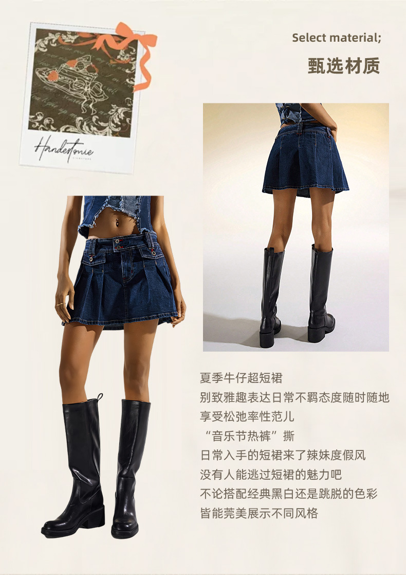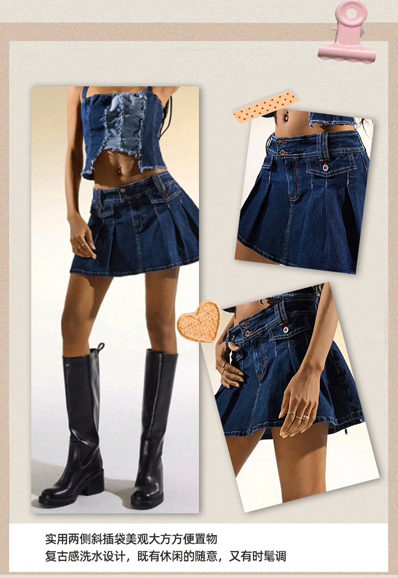 2025 일본과 한국의 새로운 여름 디자인 A라인 스커트, 힙 커버 하이웨이스트 미니스커트, 인스 스타일 데님 스커트스토어 가기