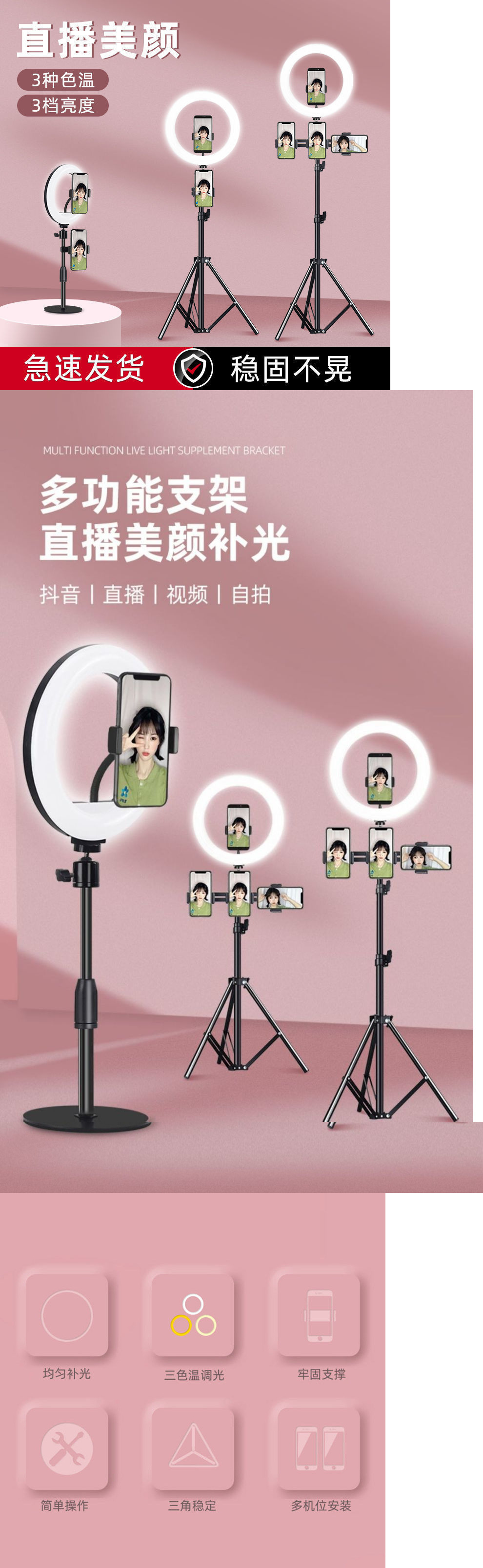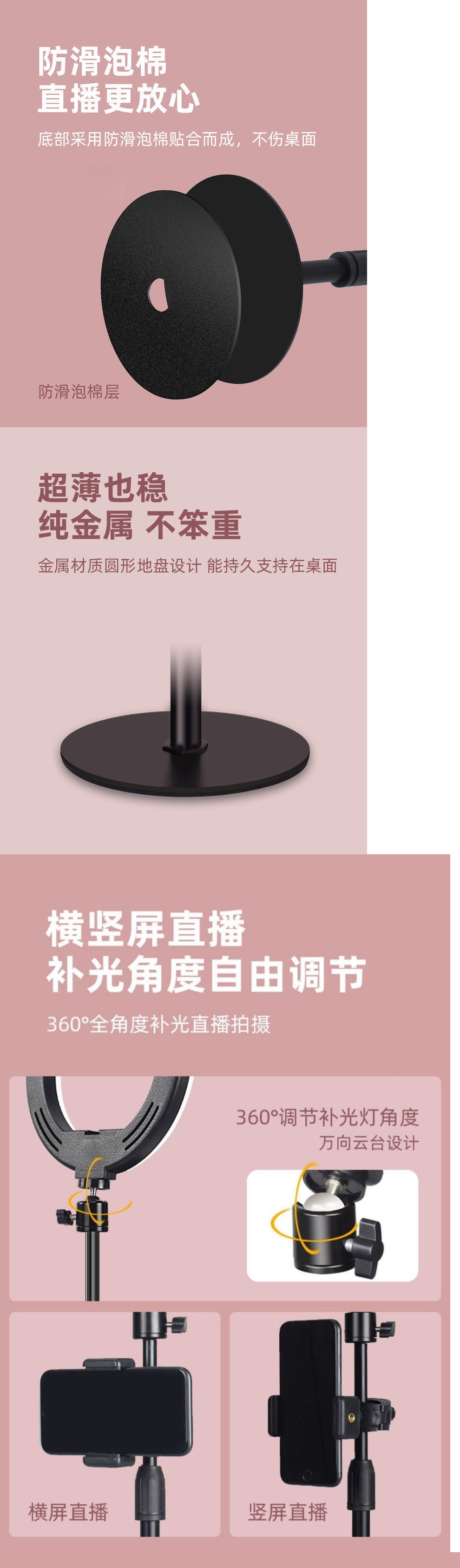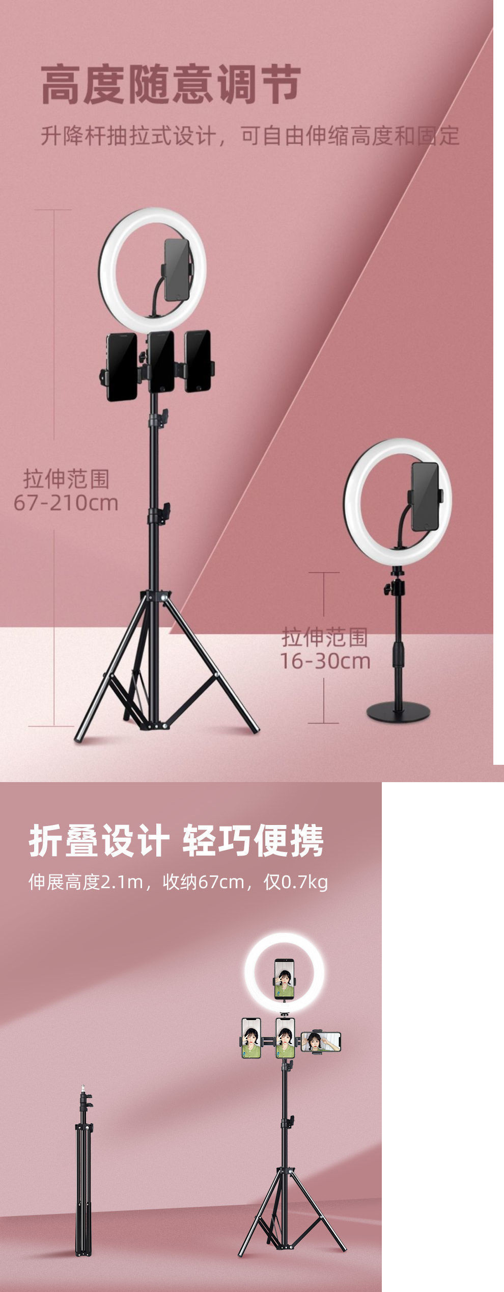라이브 스트리밍 휴대폰 홀더, 범용 데스크탑, 새로운 셀카봉 삼각대, 플로어 스탠딩 필 라이트 룸 휴대폰 홀더