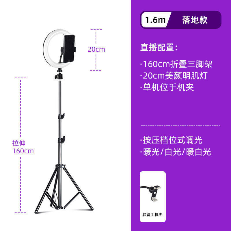 라이브 스트리밍 휴대폰 홀더, 범용 데스크탑, 새로운 셀카봉 삼각대, 플로어 스탠딩 필 라이트 룸 휴대폰 홀더스토어 가기