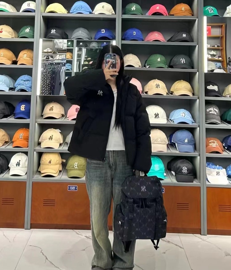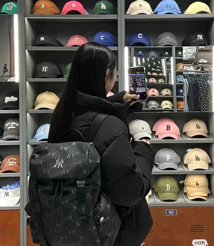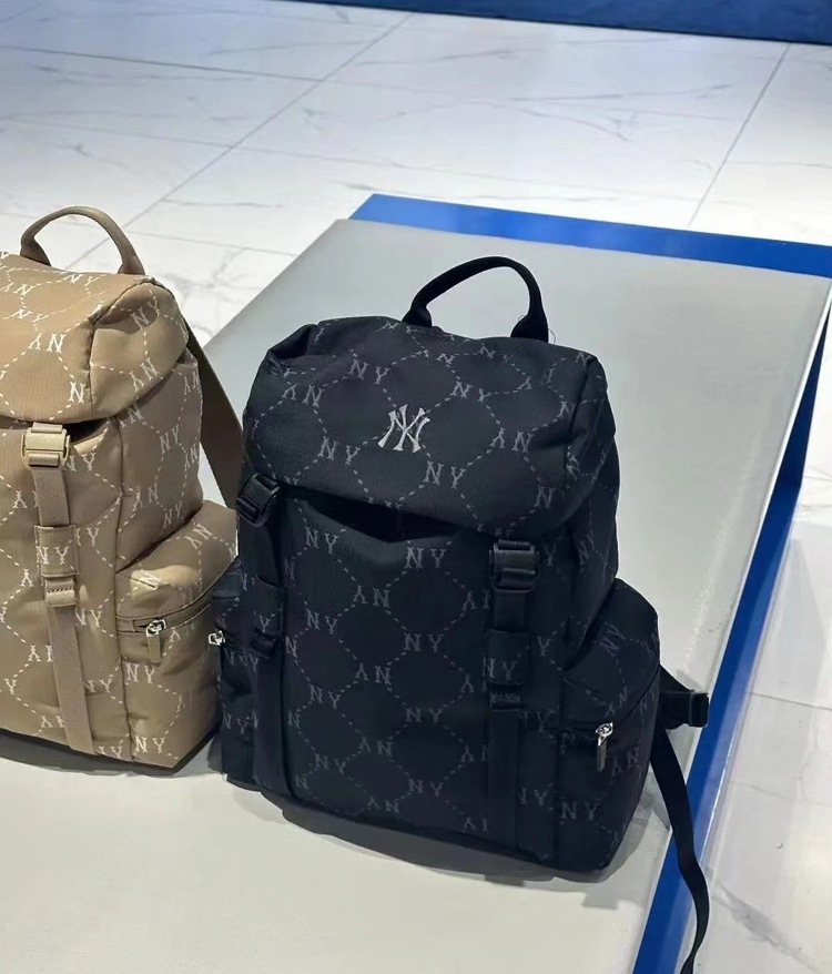 한국 MLB2025 남성과 여성을 위한 새로운 등산 배낭, 다이아몬드 노안 대용량 풀 프린트 패션 배낭스토어 가기