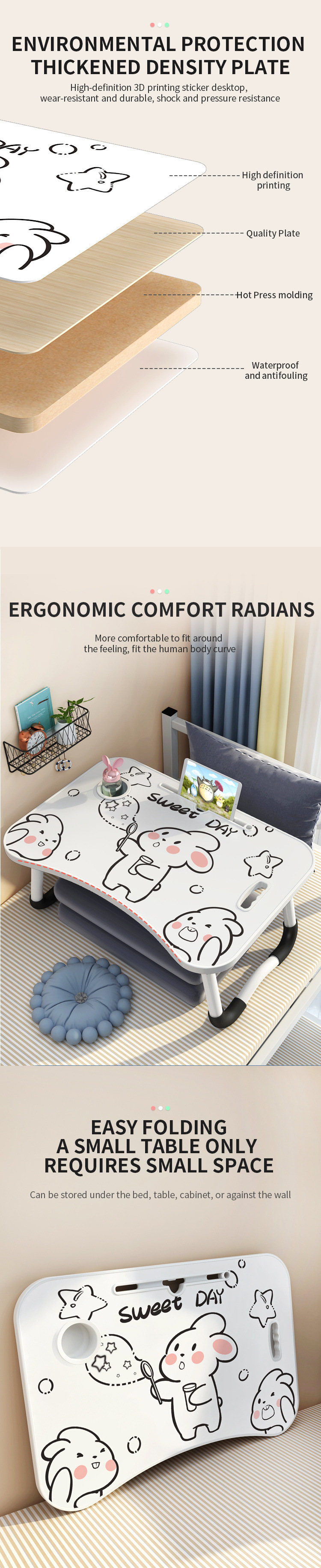 침대 접이식 작은 테이블 노트북 테이블 학습 테이블 게으른 침실 기숙사 학생을위한 휴대용 다기능 테이블
