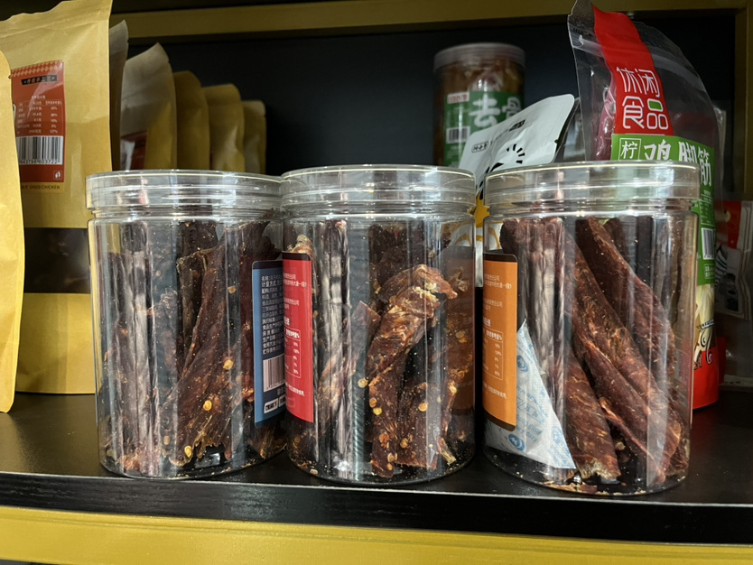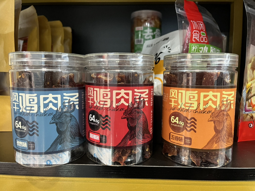 치킨 육포, 자연 건조된 닭가슴살 스트립, 고단백, 배고픔 방지, 쫄깃함 감소, 지방 감소, 피트니스 스낵, 스낵 식품스토어 가기