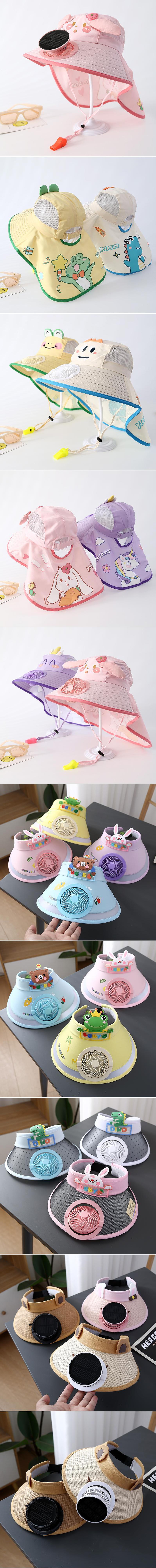 어린이용 팬이 달린 빈 탑 태양 모자 아기 어린이 소년 소녀 태양 모자 태양열 팬 모자스토어 가기