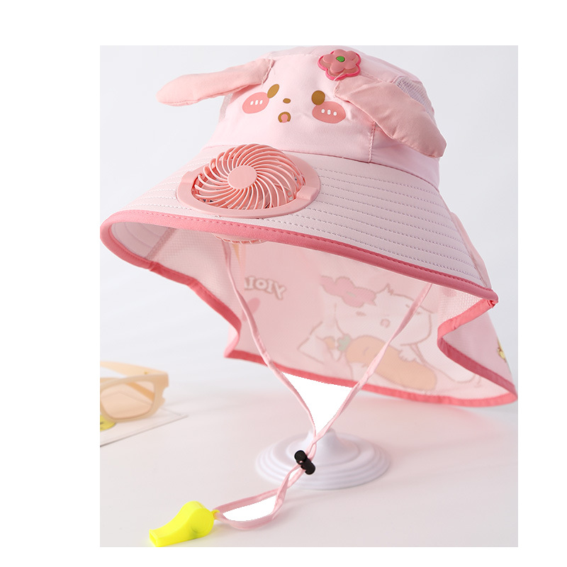 • 만화 목도리 태양열 팬 모델 - 핑크 토끼