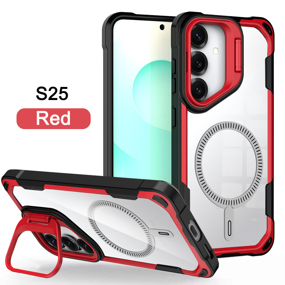 삼성 S25 마그네틱 휴대 전화 케이스에 적합 스탠드 충전 케이스 포함 Bone Shield 휴대 전화 보호 커버 다기능