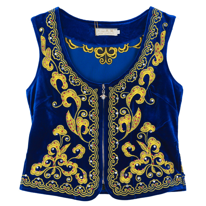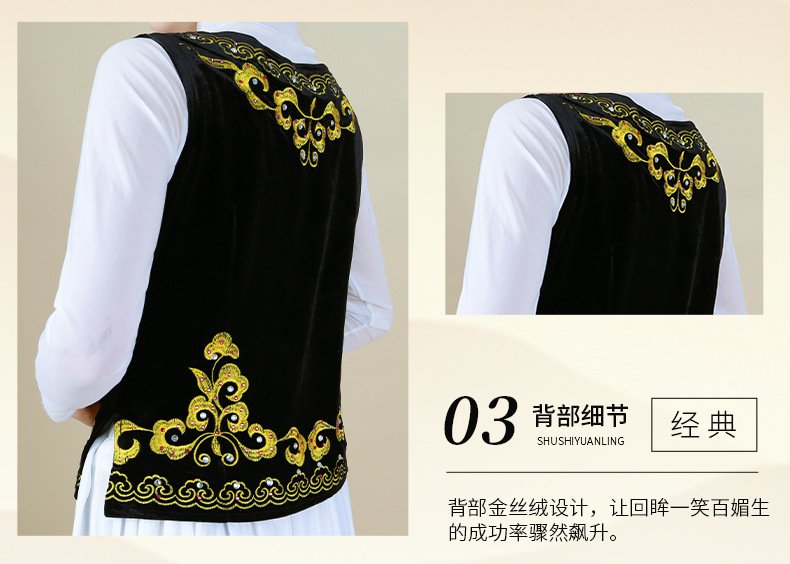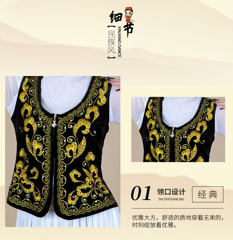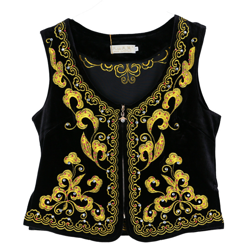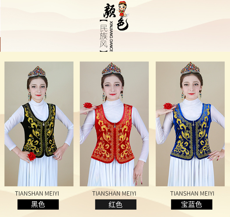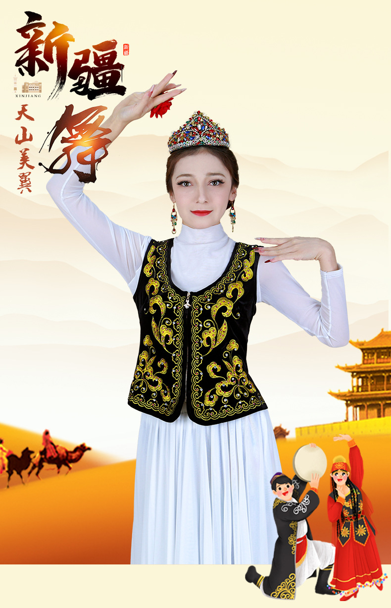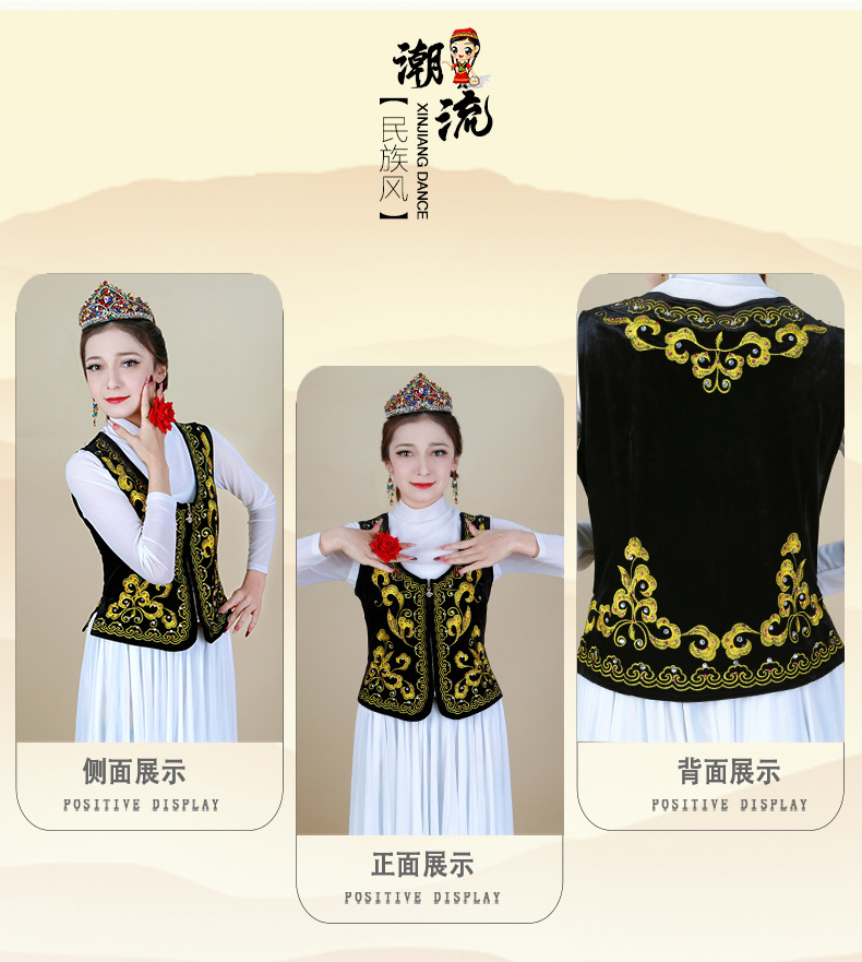 시진위안 민족 스타일 짧은 조끼 무대 댄스 공연 의상 위구르 여성 봄 여름 검은 조끼스토어 가기