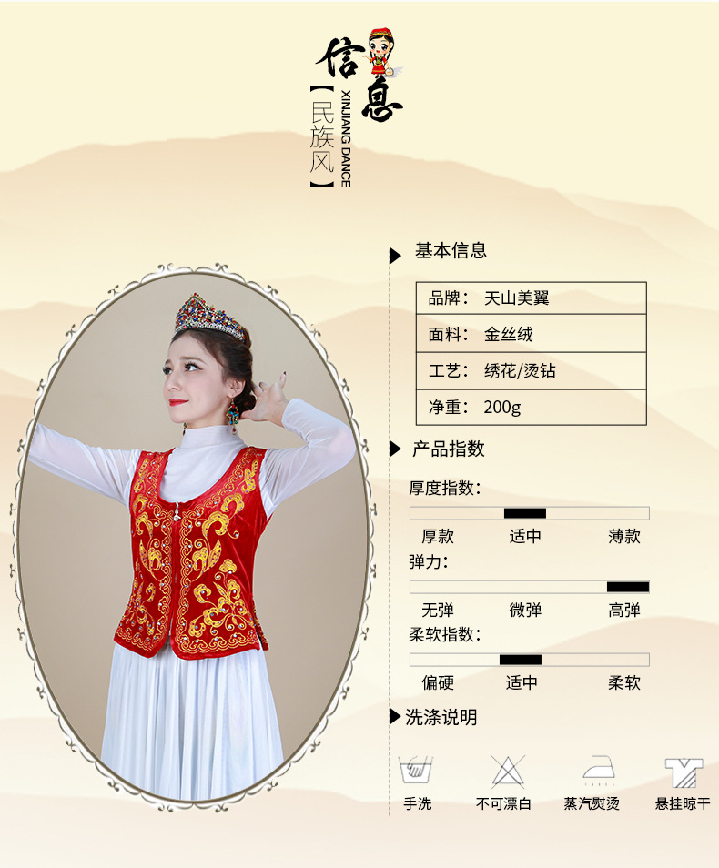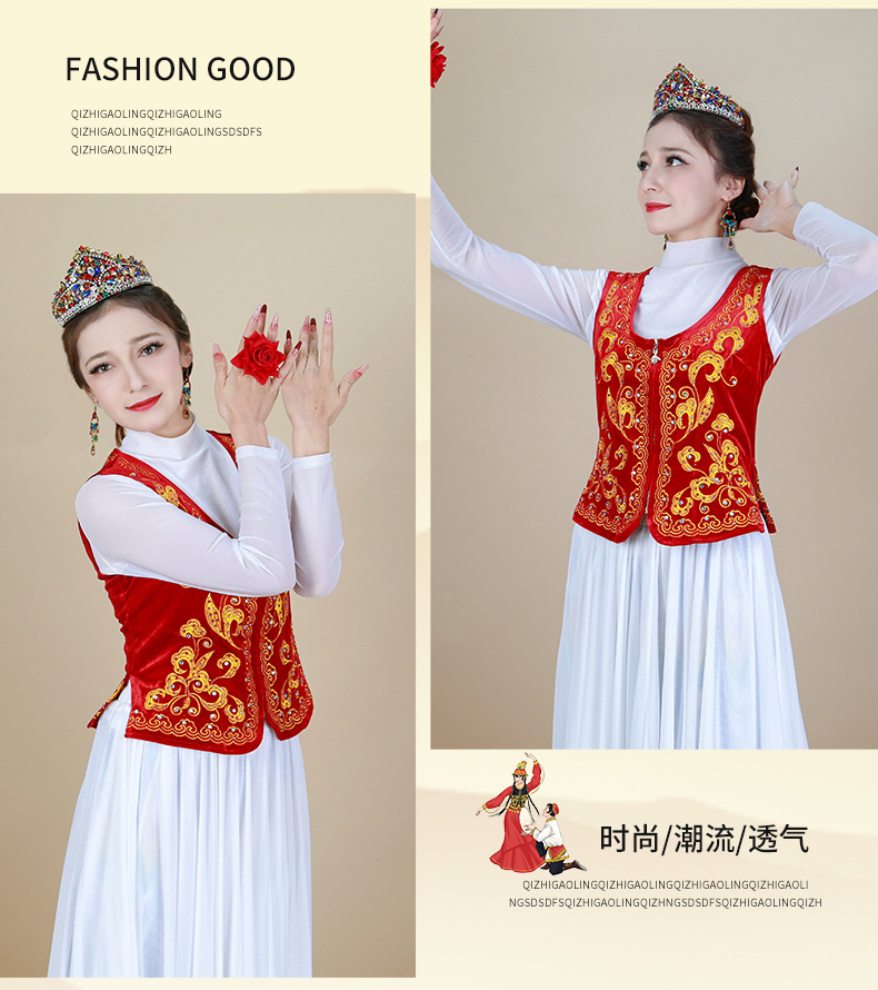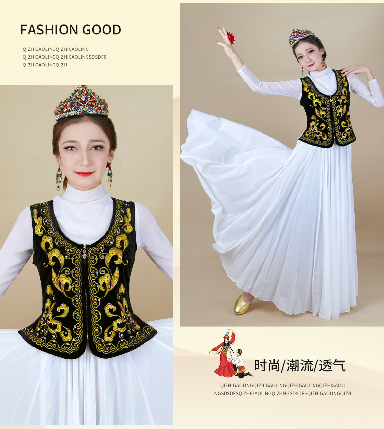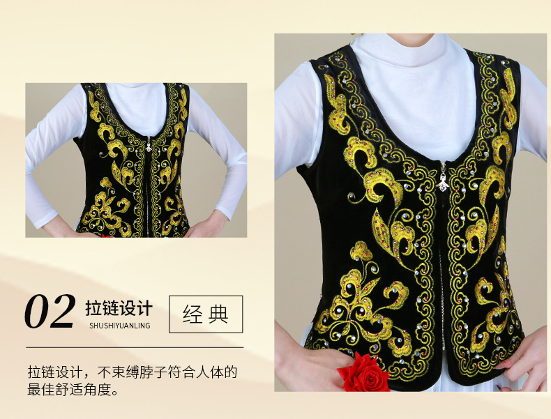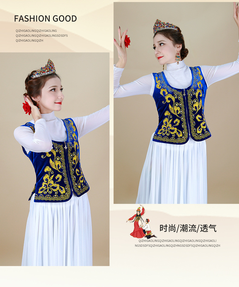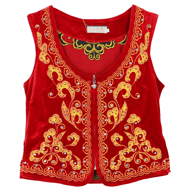 시진위안 민족 스타일 짧은 조끼 무대 댄스 공연 의상 위구르 여성 봄 여름 검은 조끼스토어 가기