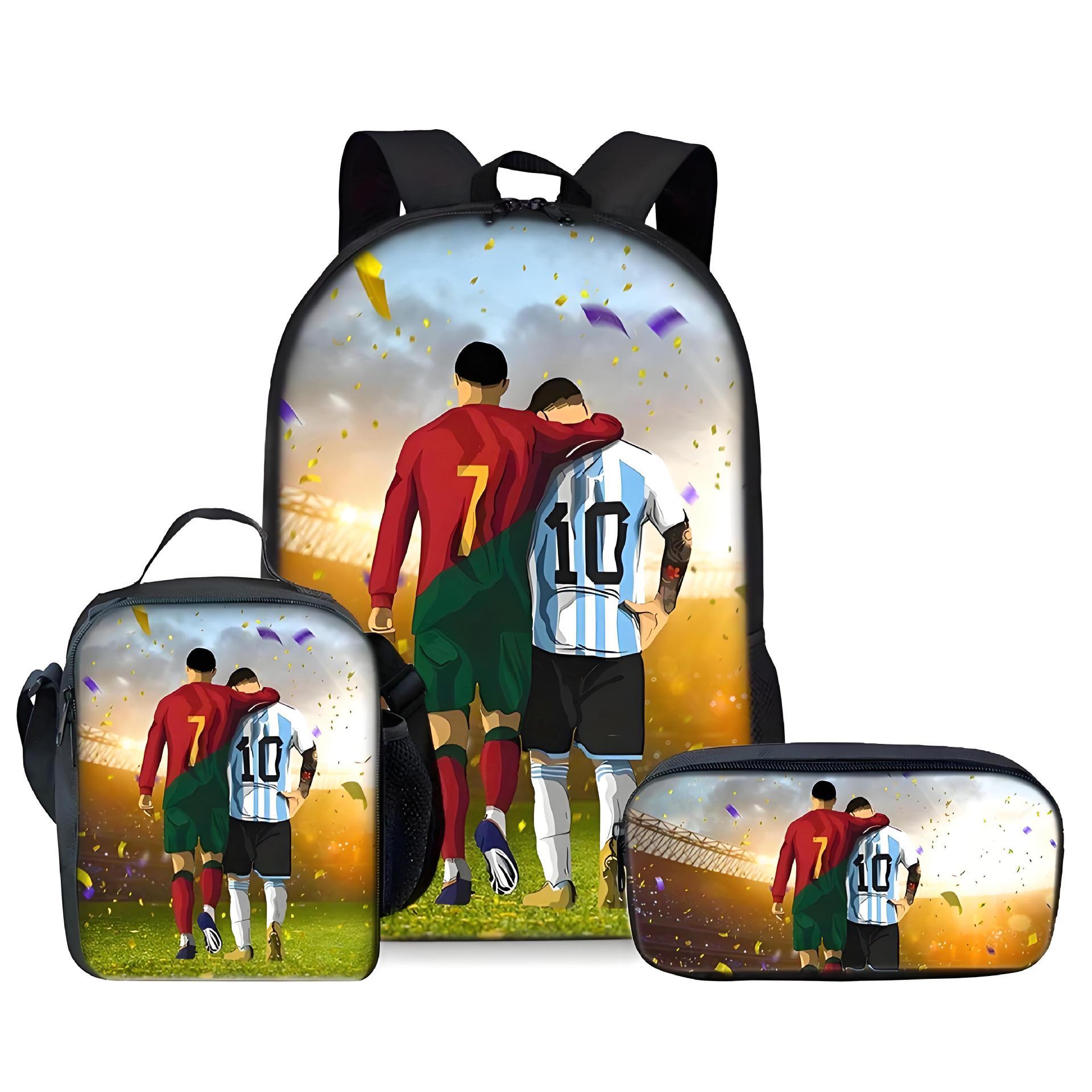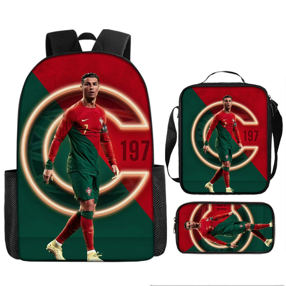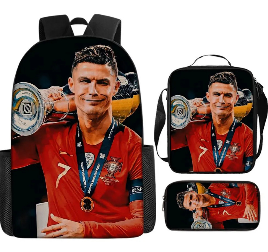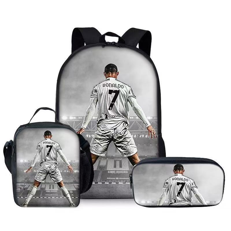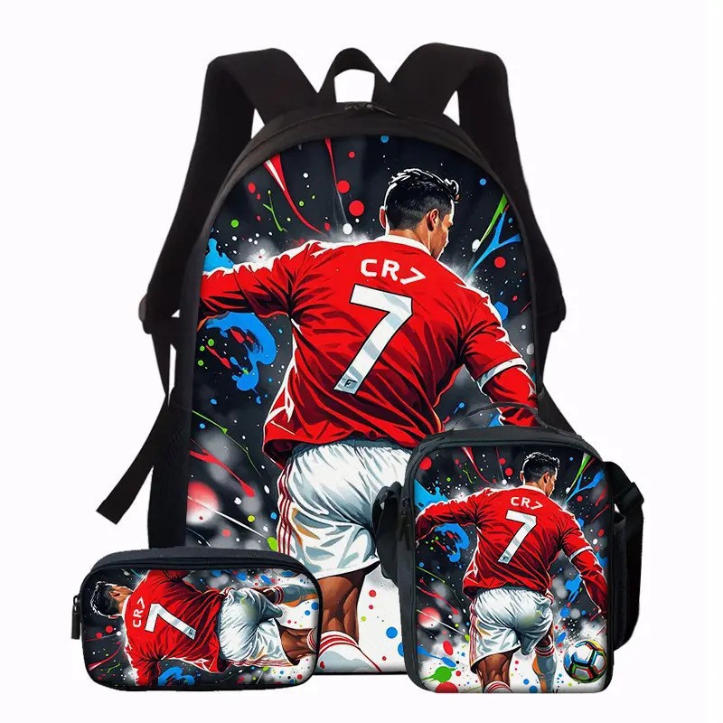 Ronaldo 만화 어린이 학교 가방 3 피스 세트 초등학교 가방 방수 폴리 에스터 크로스 바디 가방 연필 가방 현대 헤어스토어 가기