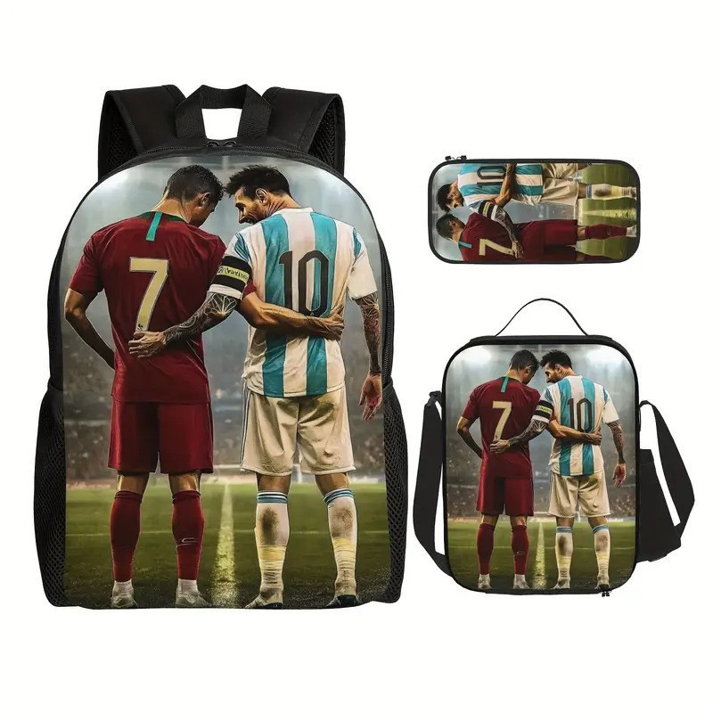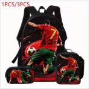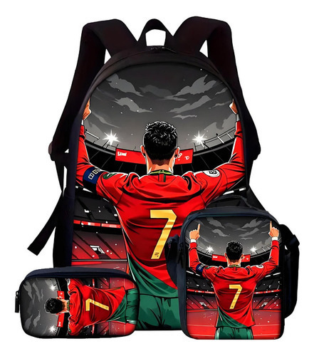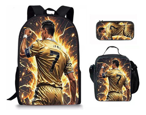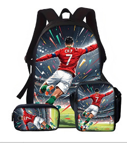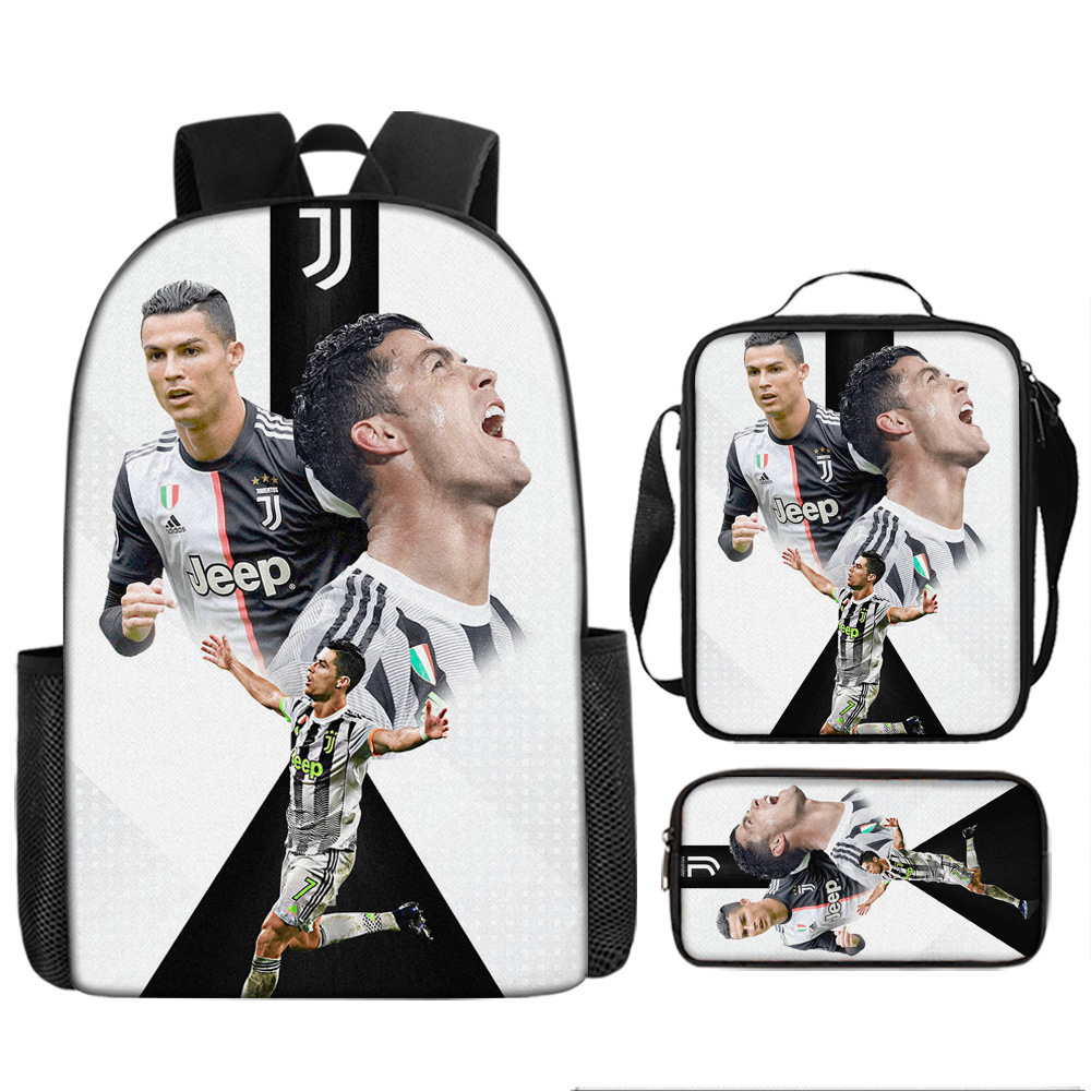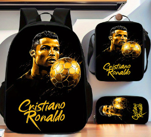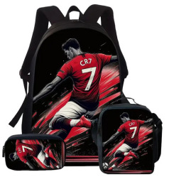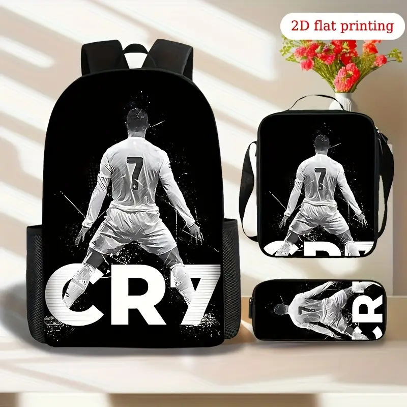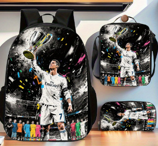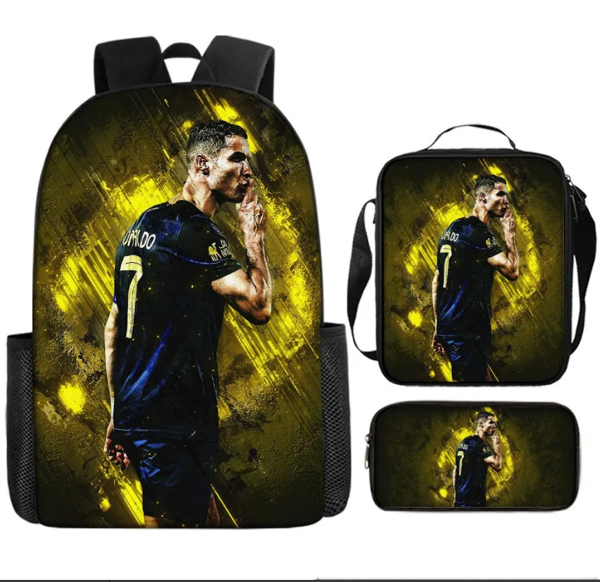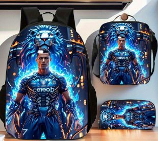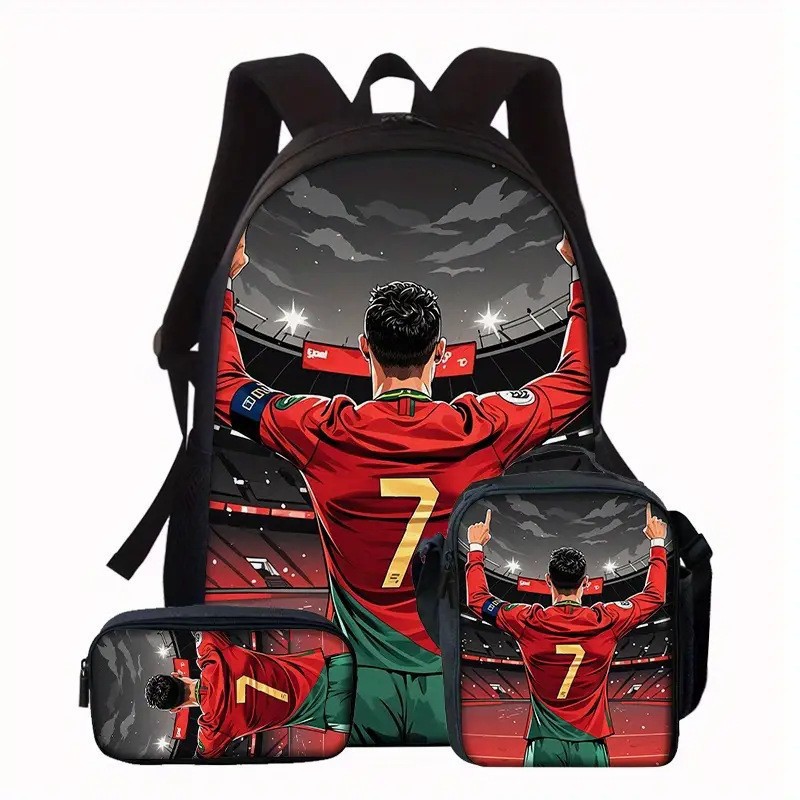 Ronaldo 만화 어린이 학교 가방 3 피스 세트 초등학교 가방 방수 폴리 에스터 크로스 바디 가방 연필 가방 현대 헤어스토어 가기