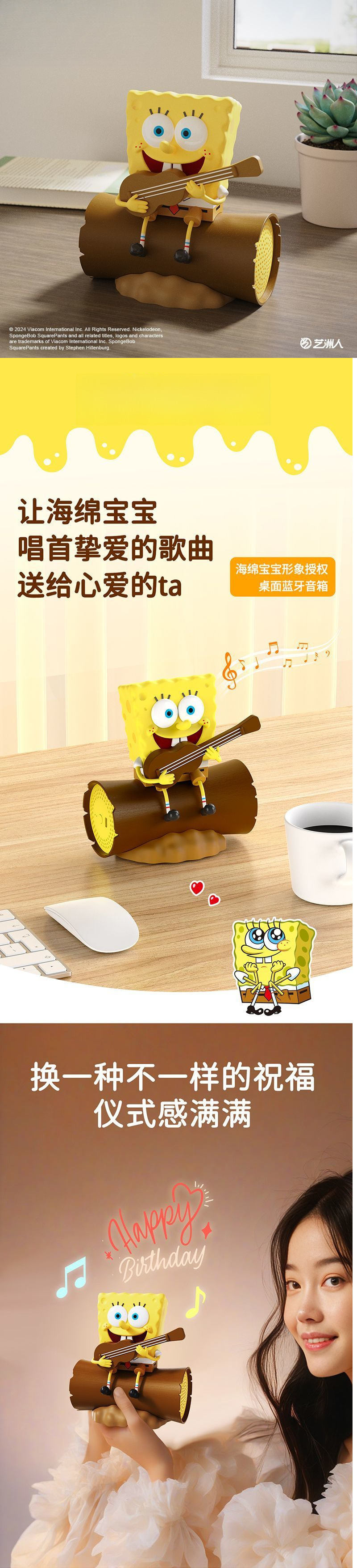 Yanqu Spongebob Bluetooth 만화 오디오 맞춤형 무선 Bluetooth 스피커 데스크탑 장식품 소녀를위한 생일 선물