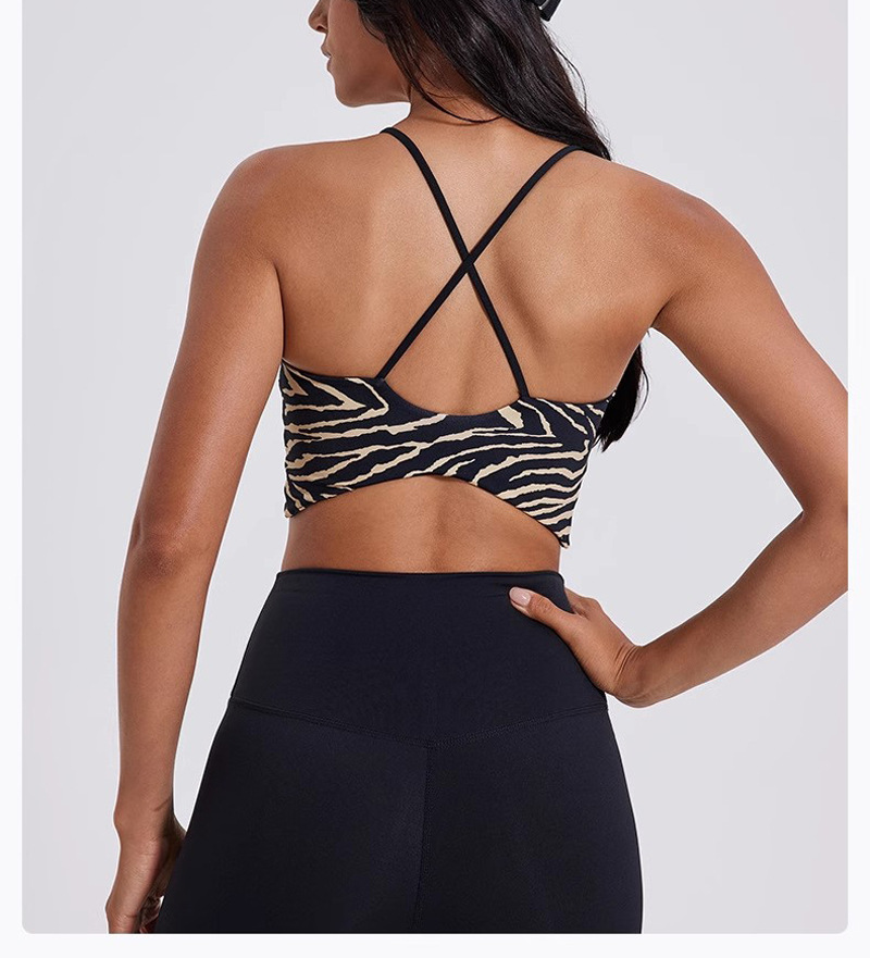 여성용 스파게티 스트랩 U 넥 스포츠 브라, 레오파드 프린트, 섹시하고 아름다운 요가 조끼, 슬리밍 피트니스 속옷, 충격 방지스토어 가기