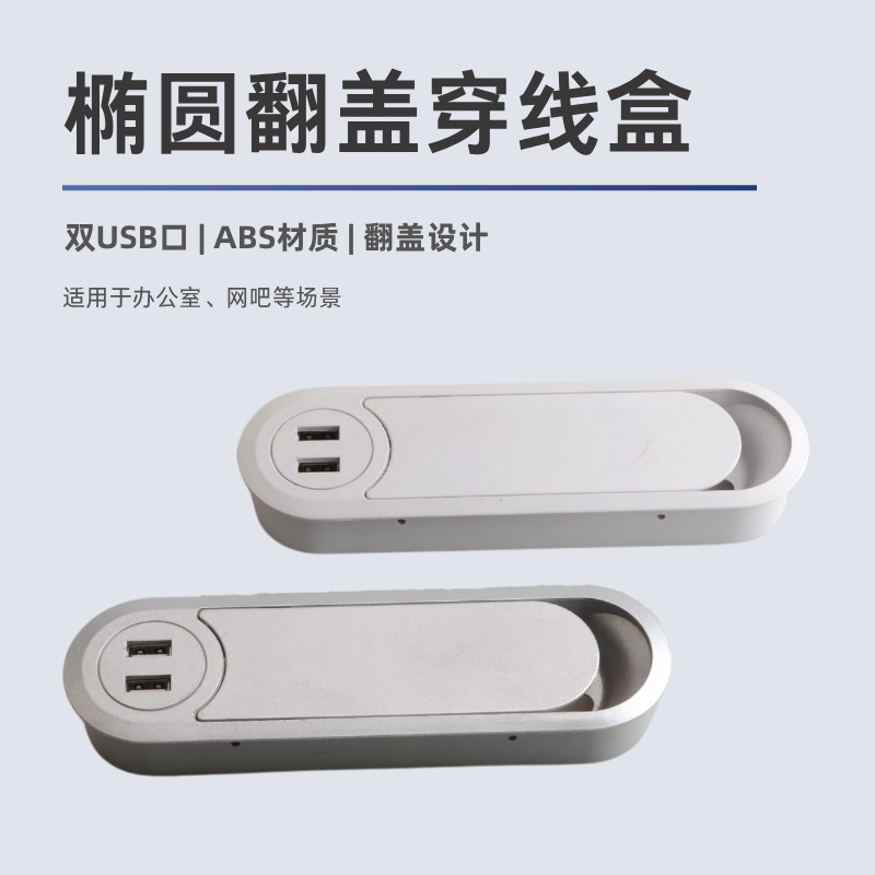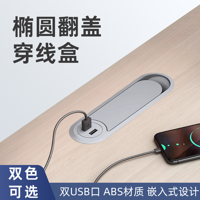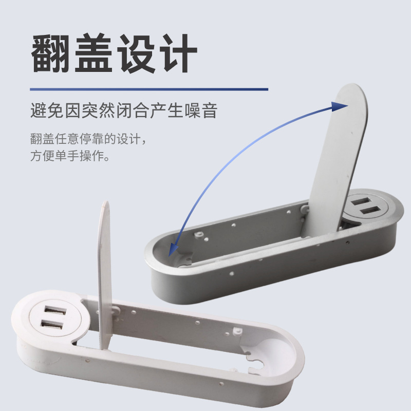 USB 배선 상자가 있는 사무실 책상 직사각형 와이어 구멍 커버 컴퓨터 책상 회의 테이블 플립 탑 배선 상자 배선 상자스토어 가기
