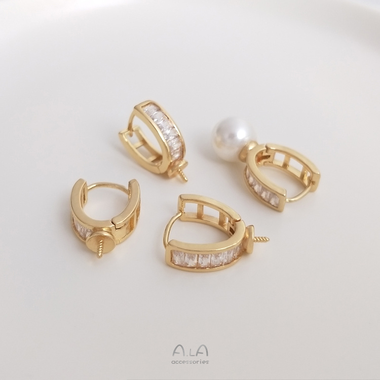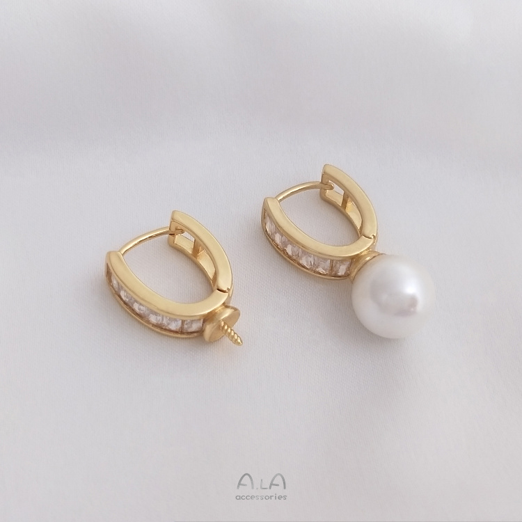 전기 도금 14K 금도금 상감 지르콘 비드 귀걸이 수제 diy 접착제 반 구멍 진주 귀걸이 귀 액세서리스토어 가기