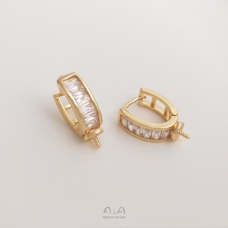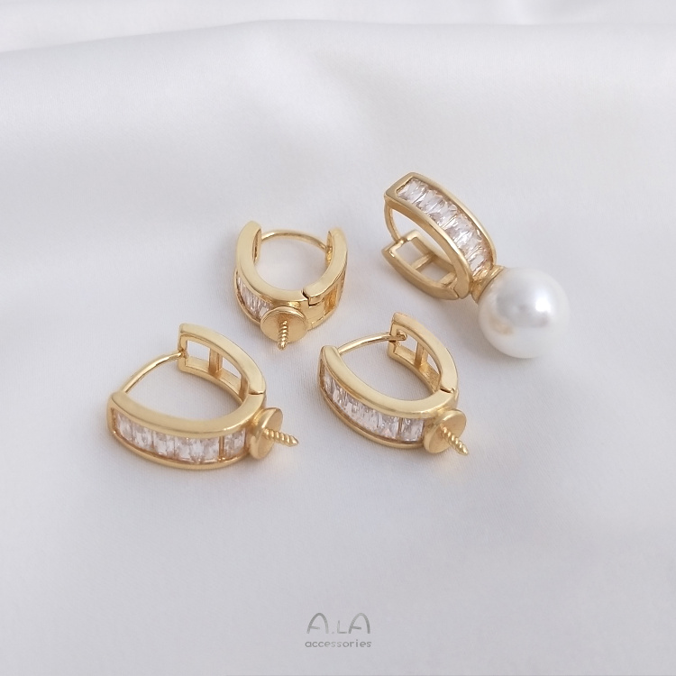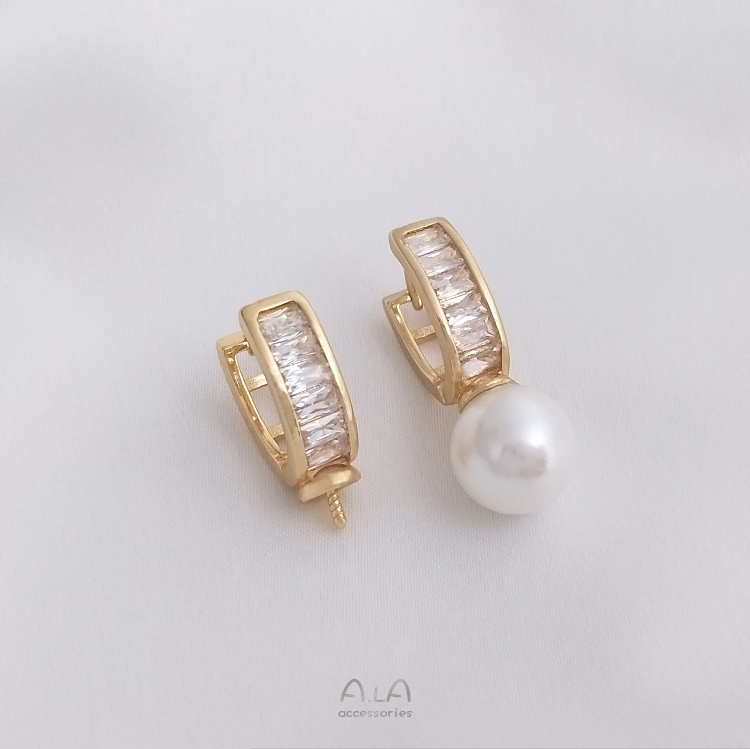 전기 도금 14K 금도금 상감 지르콘 비드 귀걸이 수제 diy 접착제 반 구멍 진주 귀걸이 귀 액세서리