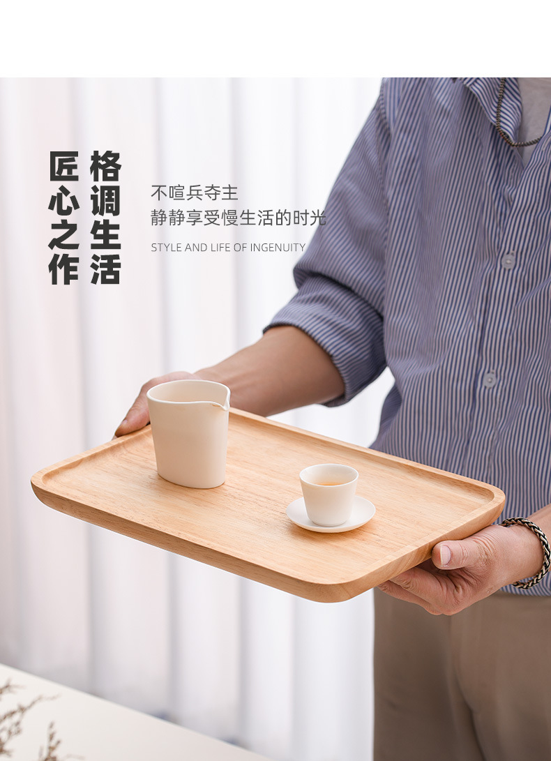나무 일본 식기 직사각형 고무 나무 트레이 호텔 나무 과일 접시 차 컵 물 컵 나무 트레이 과일 접시스토어 가기