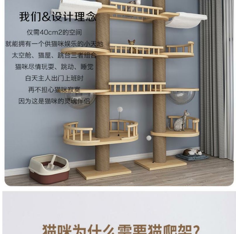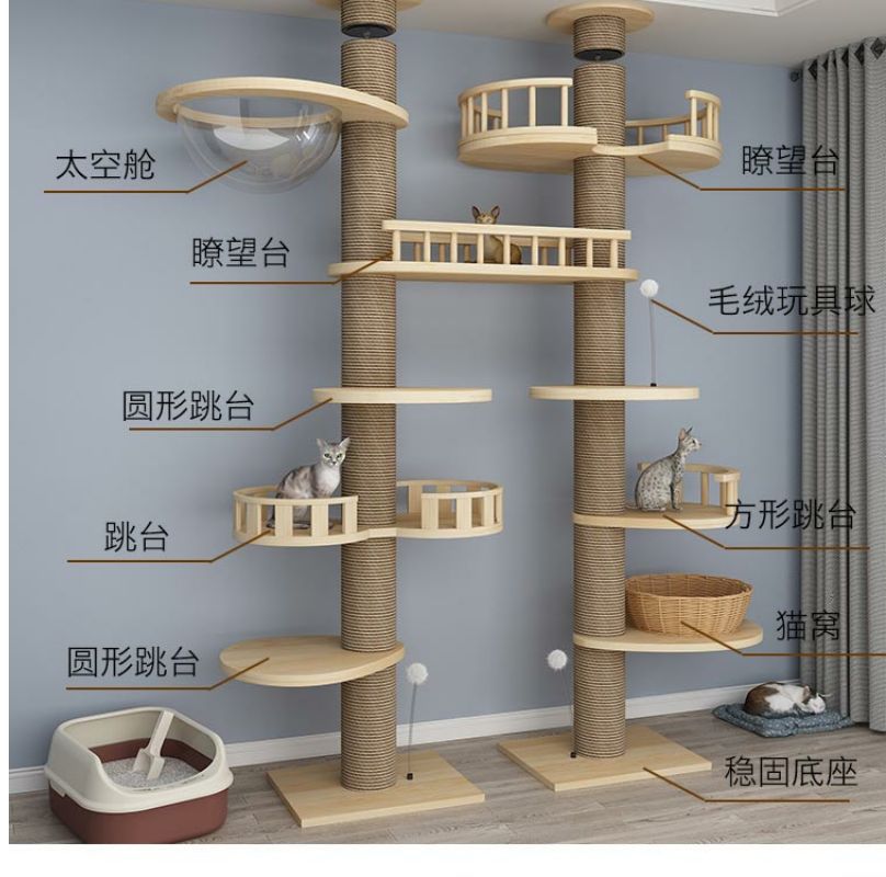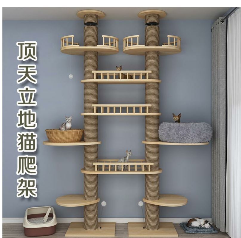고양이 클라이밍 프레임, 통나무 PVC, 다층, 공간 절약형, 대형 천장부터 바닥까지 고양이 클라이밍 프레임, 고양이 둥지, 고양이 트리 일체형스토어 가기