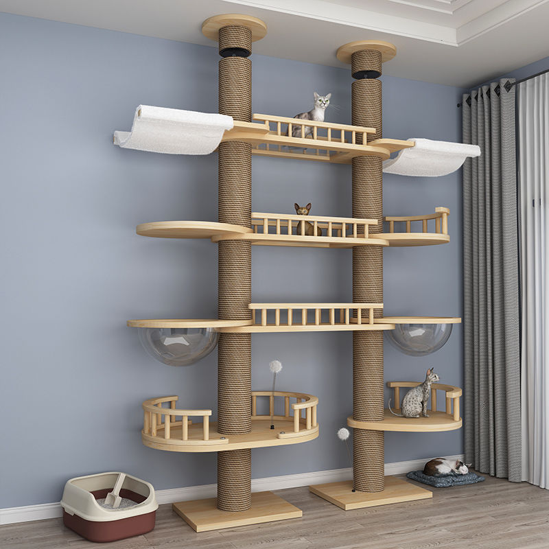 고양이 클라이밍 프레임, 통나무 PVC, 다층, 공간 절약형, 대형 천장부터 바닥까지 고양이 클라이밍 프레임, 고양이 둥지, 고양이 트리 일체형