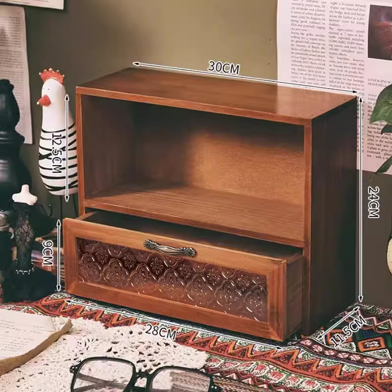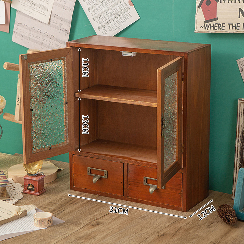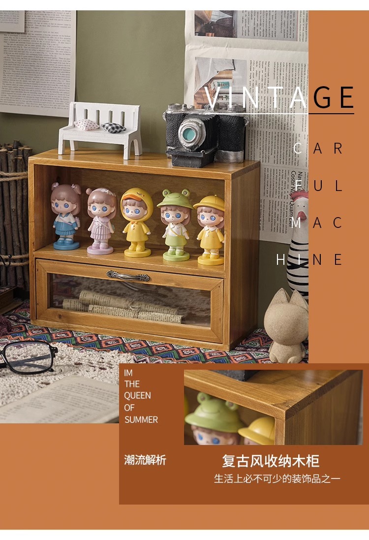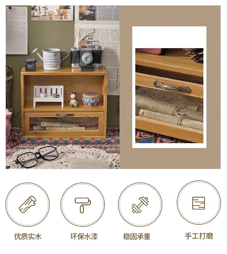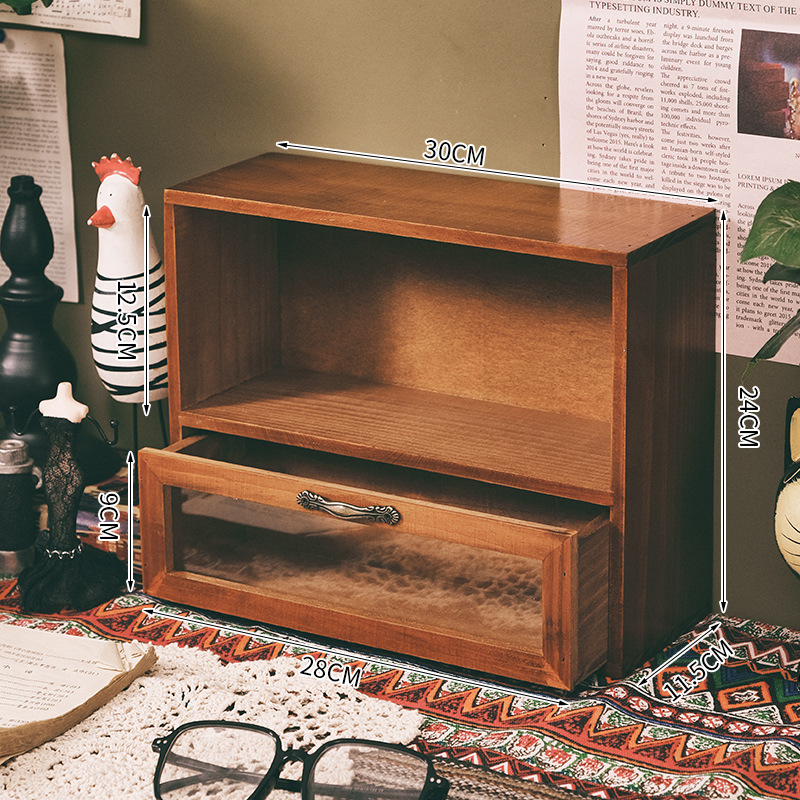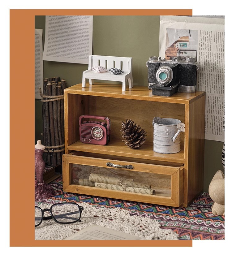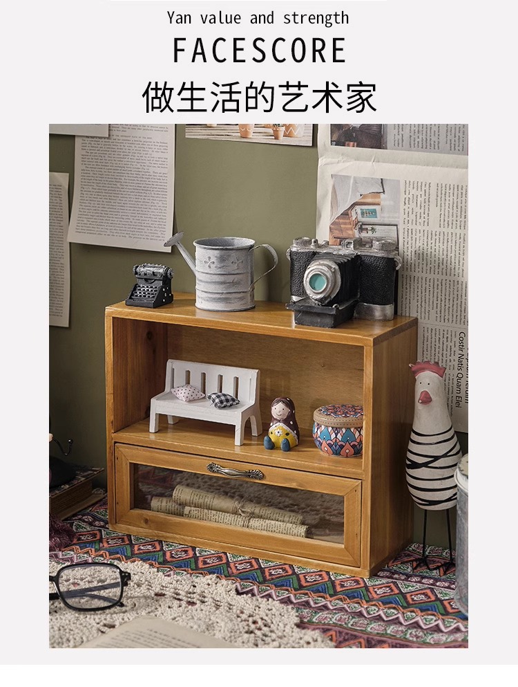 레트로 데스크탑 블라인드 박스 스토리지 데스크 나무 매니큐어 테이블 화장품 스토리지 캐비닛 컵 향수 스토리지 랙