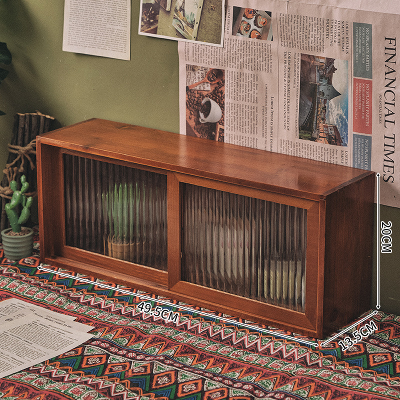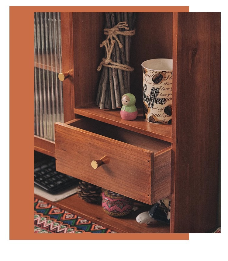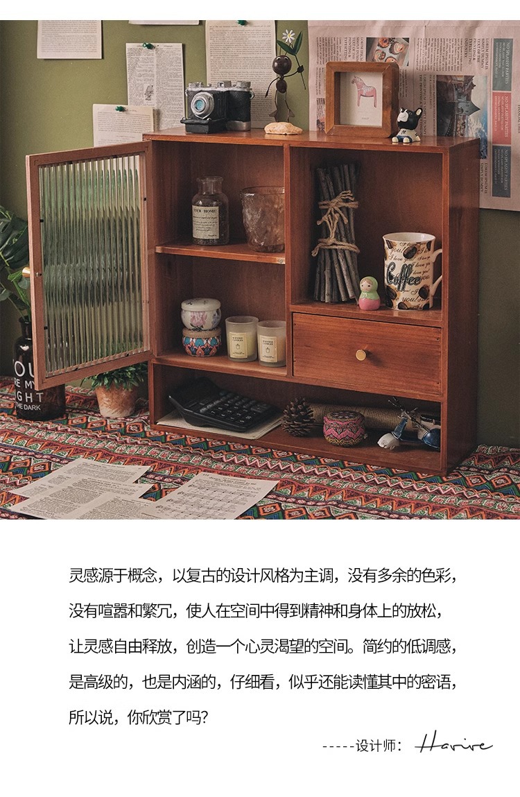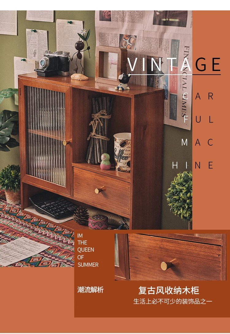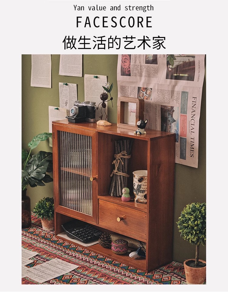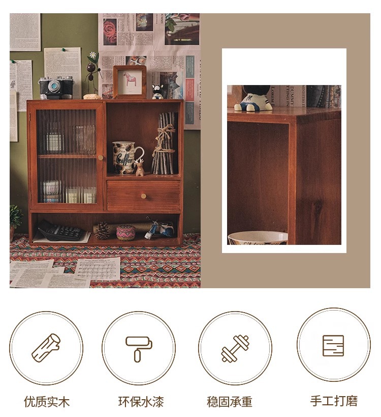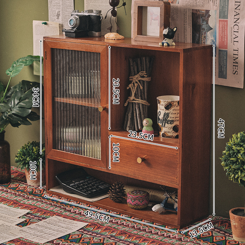 향수 및 화장품 데스크탑 보관 캐비닛 복고풍 사무실 핸드북 컵 보관 랙 서랍이 있는 원목 캐비닛 방진스토어 가기