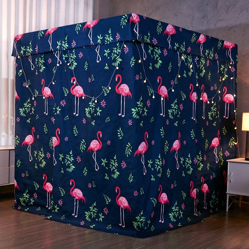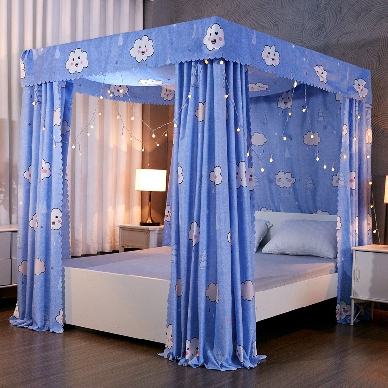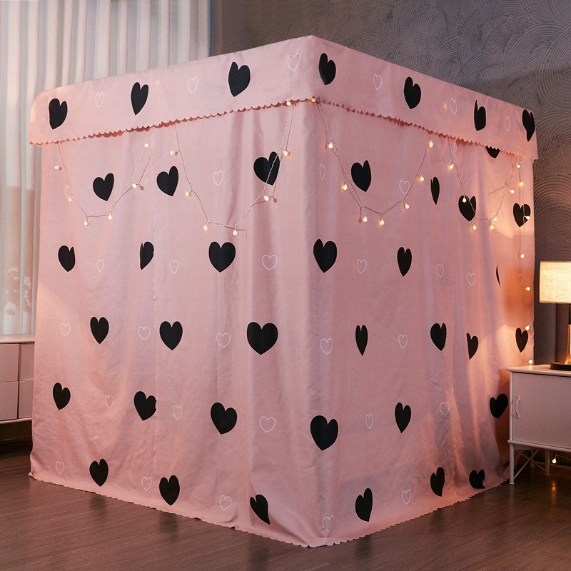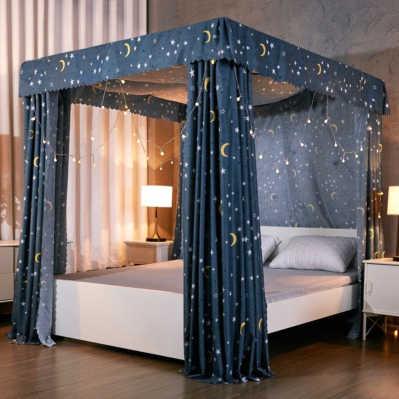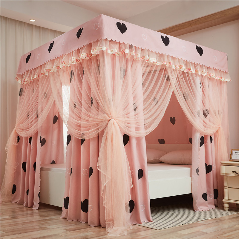 공주 스타일 침대 커튼, 차광 및 방진 모기장, 바닥에서 천장까지 두꺼운 침대 커튼, 가정용 침실 방풍 및 개인 정보 보호 커튼 브래킷