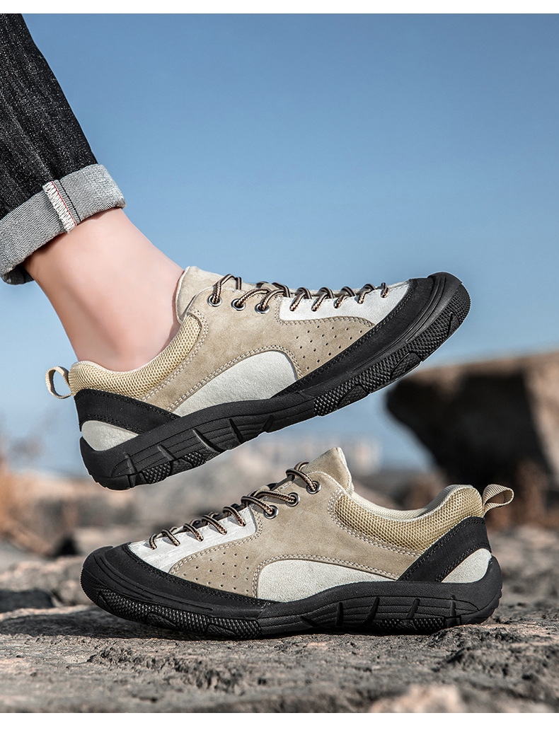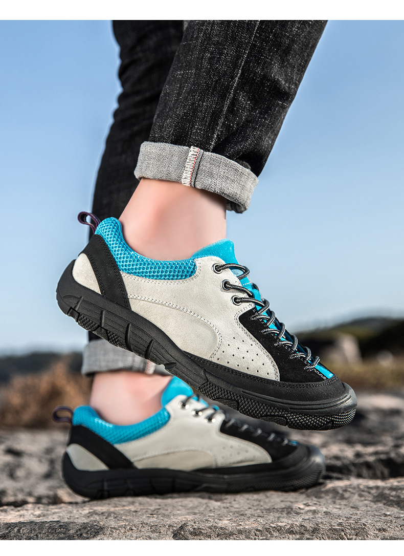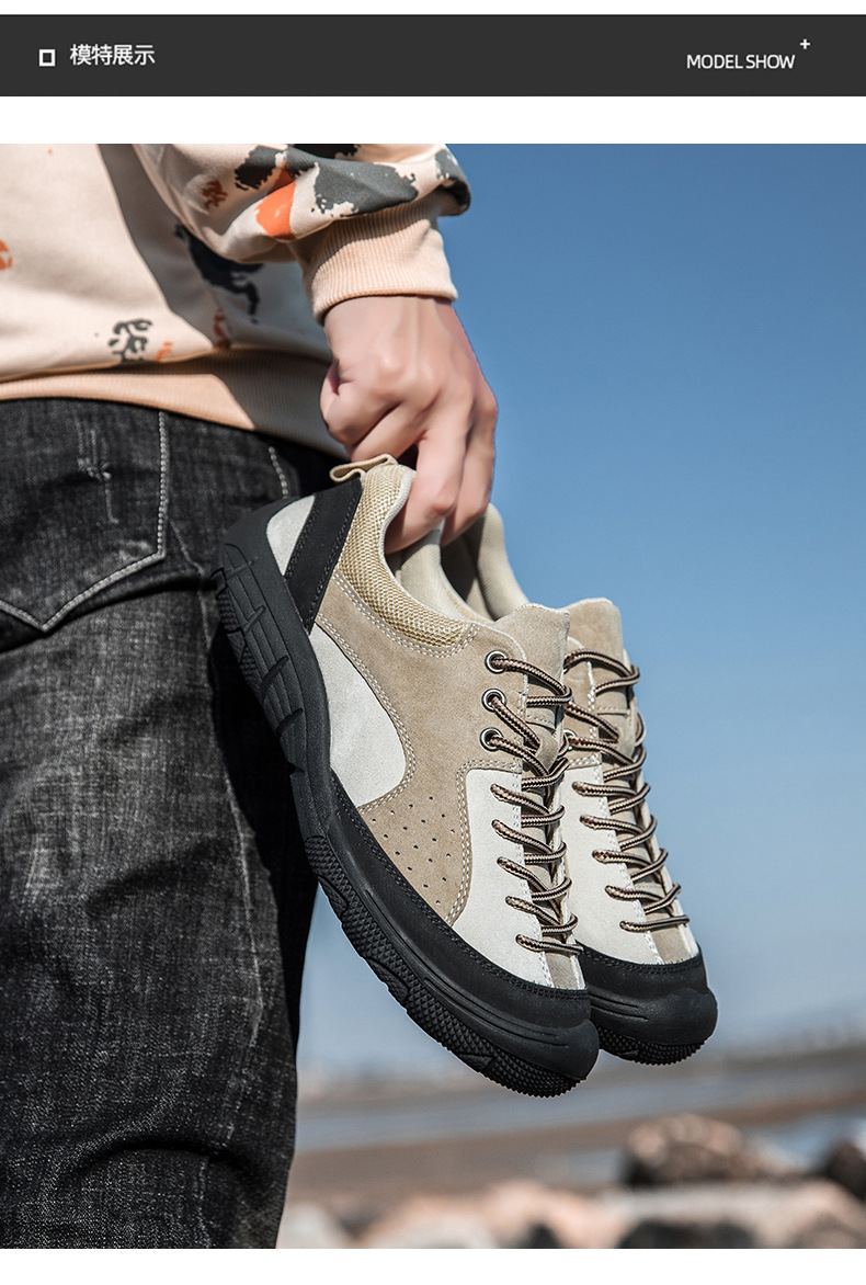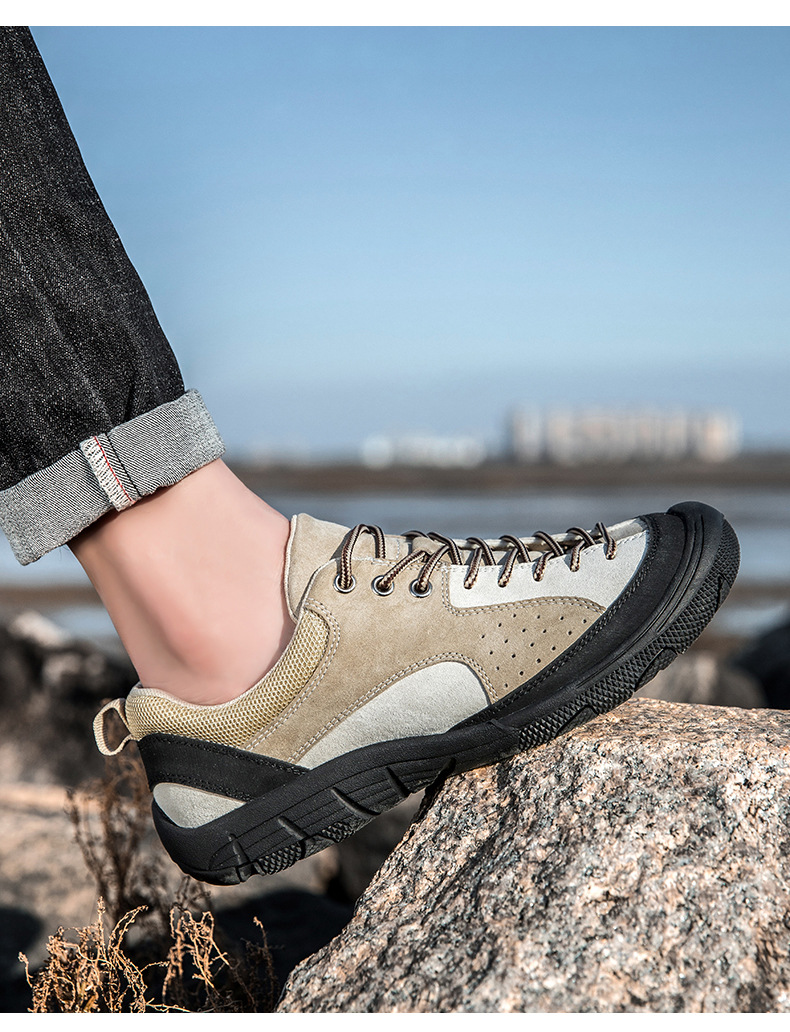 남성용 크로스보더 인기 하이킹 신발, 스웨이드 가죽 캐주얼 야외 운동화, 사계절 통기성 여행 하이킹 신발, 대형 사이즈스토어 가기