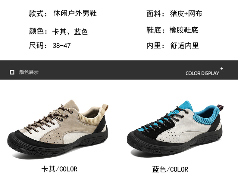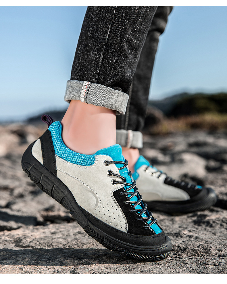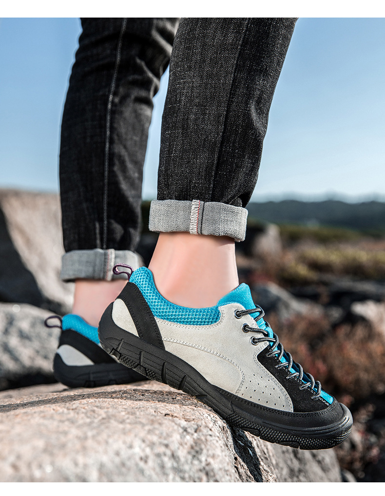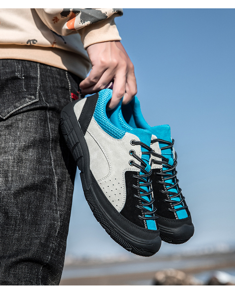 남성용 크로스보더 인기 하이킹 신발, 스웨이드 가죽 캐주얼 야외 운동화, 사계절 통기성 여행 하이킹 신발, 대형 사이즈스토어 가기