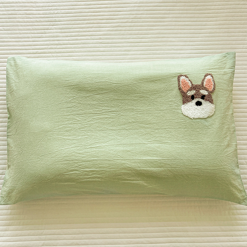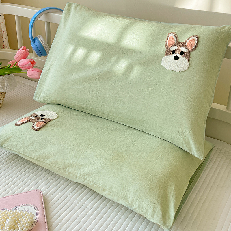 • Qiqi Yuncao 녹색 [A급 면 100% 워싱 면 수건 자수 베갯잇] 싱글 팩