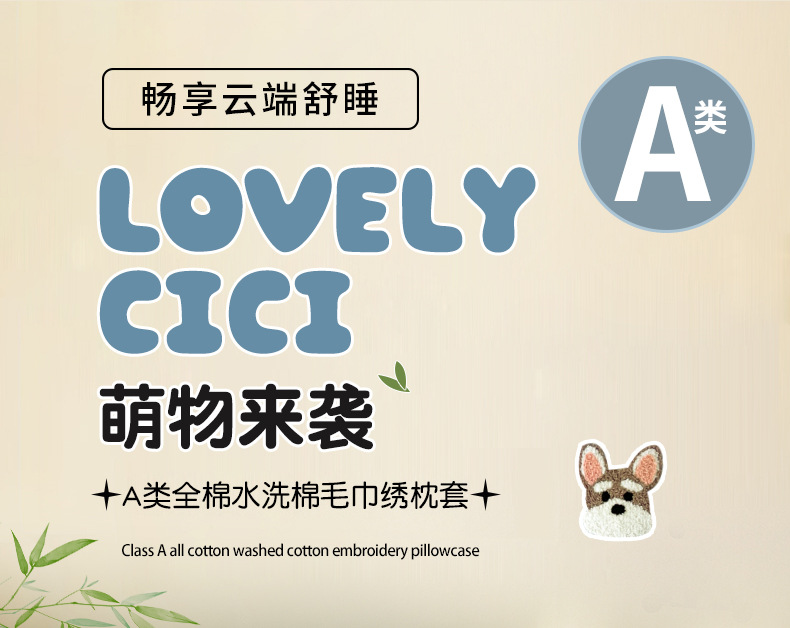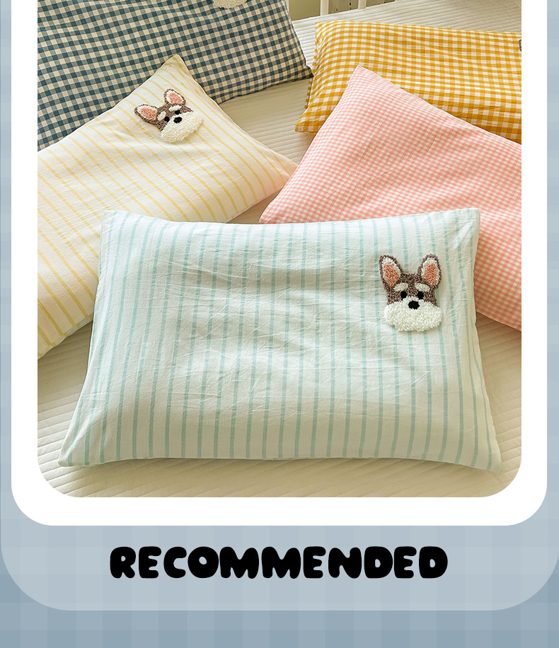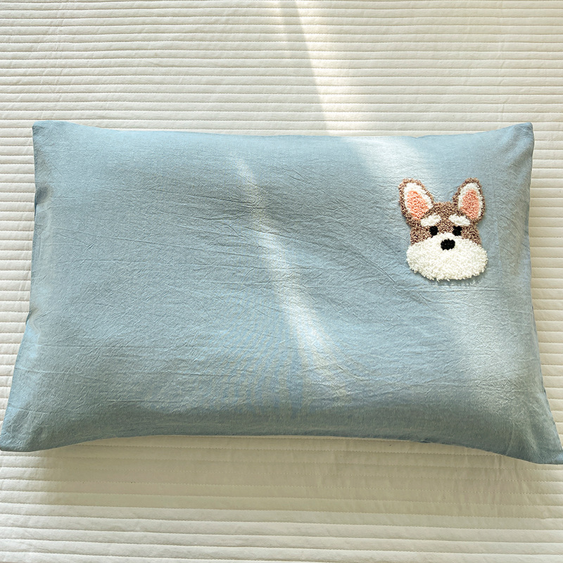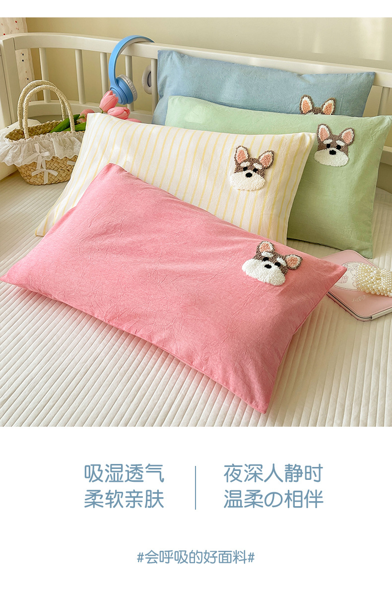 • Qiqi 파우더 [A급 면 100% 워싱 면 수건 자수 베갯잇] 싱글 팩