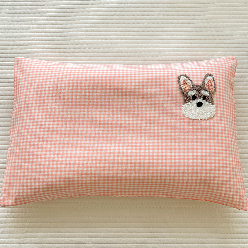 • Qiqi 핑크 파인 그리드 [A급 면 100% 워시드 코튼 타월 자수 베갯잇] 싱글 팩