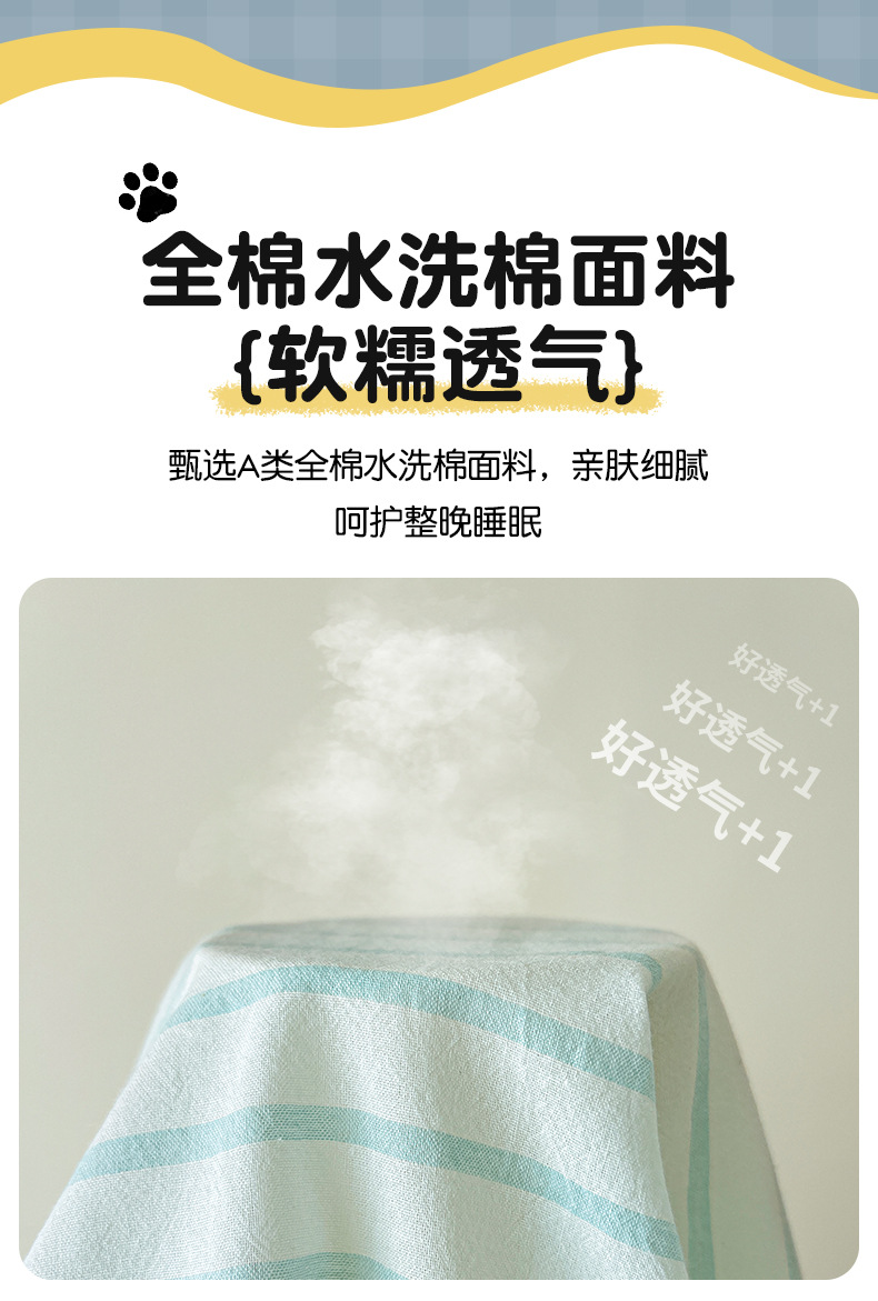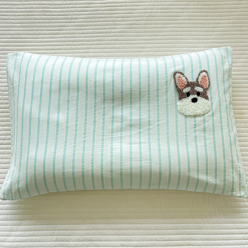 • Qiqi 컬러 스트라이프 그린 [A급 면 100% 워싱 면 수건 자수 베갯잇] 싱글 팩