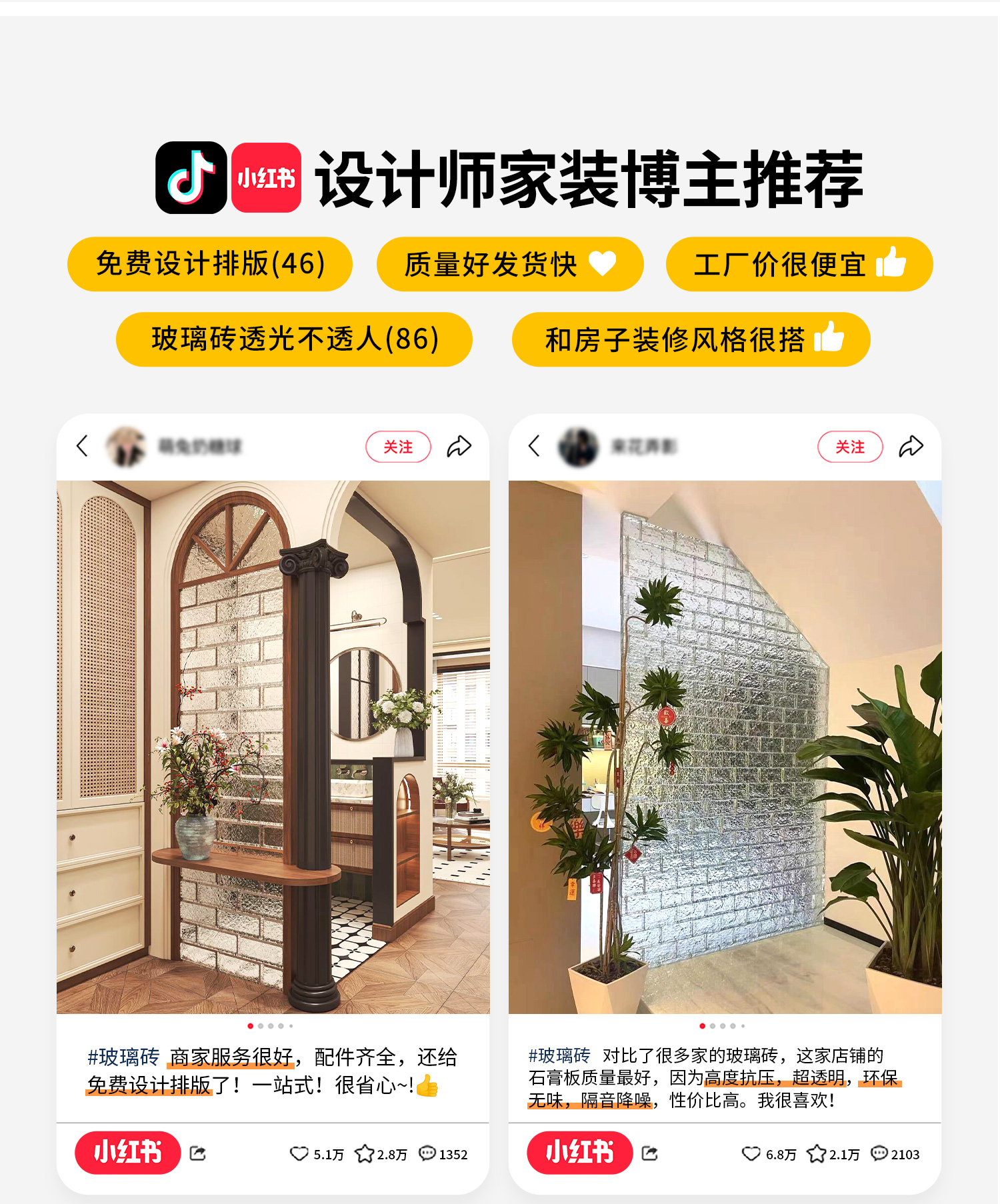 • ❋☽☽반투명 물결 [190*190*80] 이중층 진공벽돌❋☽☽
